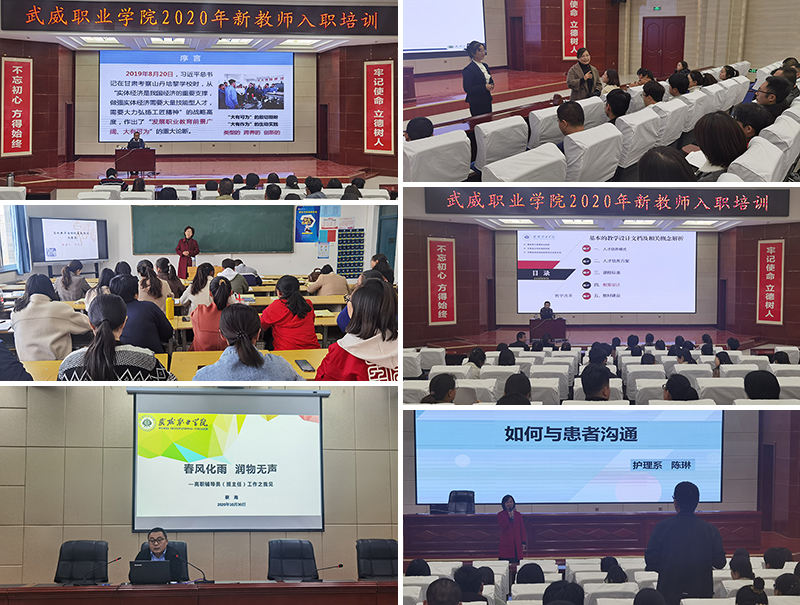集中培訓(xùn)分為名師講堂、職業(yè)解碼、教學(xué)示范課和職業(yè)拓展四個模塊,分別邀請了學(xué)院黨委副書記、思政名師工作室主持人翟存祥、能源工程系負(fù)責(zé)人胡建宏、創(chuàng)新創(chuàng)業(yè)中心負(fù)責(zé)人顏魯薪、學(xué)工處教師付成榮、護(hù)理系教師趙穎和陳琳、現(xiàn)代農(nóng)業(yè)技術(shù)系教師蔡海作了精彩而又生動的報告。報告以《育師德、樹師風(fēng)、鑄師魂,努力打造師德高尚的新時代教師隊伍——從教師職業(yè)素養(yǎng)說起》《高校教學(xué)活動一般原理與實踐問題》《基本的教學(xué)設(shè)計文檔》《立足崗位勇?lián)?dāng) 扎根西涼育工匠——從青椒到骨干》《提高教學(xué)效率的有效方法》《如何與患者溝通》《春風(fēng)化雨潤物無聲——高職輔導(dǎo)員(班主任)工作之我見》為主題,使新教師對教師職業(yè)素養(yǎng)、師德師風(fēng)、教育教學(xué)改革、人才培養(yǎng)模式、創(chuàng)新創(chuàng)業(yè)、課堂教學(xué)及班主任工作有了全新的認(rèn)識。
