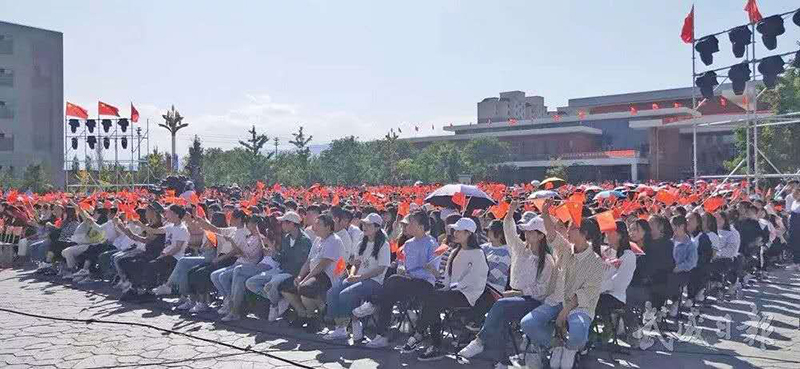 放歌新時(shí)代,筑夢新征程。9月29日,由省文化和旅游廳、市政府主辦,市委宣傳部 、省文化館、市文體廣電和旅游局承辦的慶祝中華人民共和國成立70周年甘肅省百姓文化廣場惠民演出走進(jìn)武威職業(yè)學(xué)院,上演了一場美輪美奐的視聽盛宴,熱烈慶祝新中國成立70周年,謳歌70年來黨領(lǐng)導(dǎo)全國各族人民取得的豐功偉績。