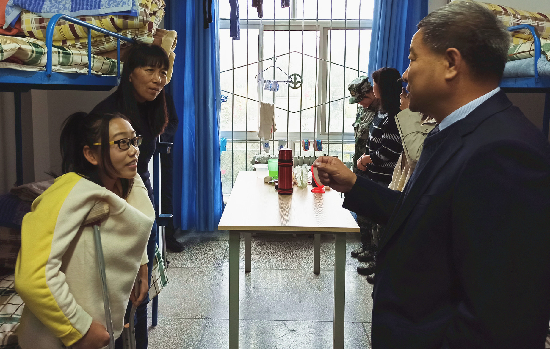 為使馮婷婷同學(xué)能迅速適應(yīng)新的學(xué)習(xí)生活環(huán)境,學(xué)院為她開辟了綠色通道,根據(jù)實際情況將其宿舍由三樓調(diào)整至一樓,將班級教室從五樓調(diào)至一樓,并在該生班級授課的教學(xué)樓、實驗樓、學(xué)生公寓樓等處修建了無障礙通道,在公寓內(nèi)安裝無障礙衛(wèi)生間,方便其學(xué)習(xí)生活。同時,學(xué)院還為馮婷婷的母親提供了公益性工作崗位,既能照顧馮婷婷,也能增加家庭收入,減輕了家庭負(fù)擔(dān)。