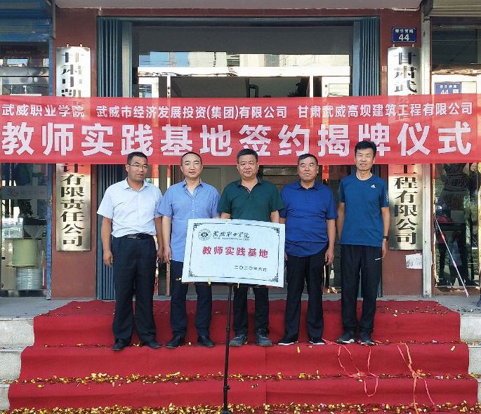 為使建筑專業(yè)的教學與建筑工程實踐緊密結(jié)合起來,實現(xiàn)企業(yè)、學院優(yōu)勢互補共同發(fā)展,8月9日,學院聯(lián)合武威市經(jīng)濟發(fā)展(集團)有限公司、甘肅武威高壩建筑工程有限公司,在甘肅武威高壩建筑工程有限公司大樓前隆重舉行武威職業(yè)學院教師實踐基地簽約揭牌儀式。出席簽約揭牌儀式的領(lǐng)導同志有:學院黨委書記、院長趙明同志,基建處負責人賈龍同志,建筑工程系副主任蔡濟眾同志,黨建負責人孫潤元同志;武威市經(jīng)濟發(fā)展(集團)有限公司董事長崔國斌、副董事長董英,甘肅武威高壩建筑工程有限公司總經(jīng)理周勝年。