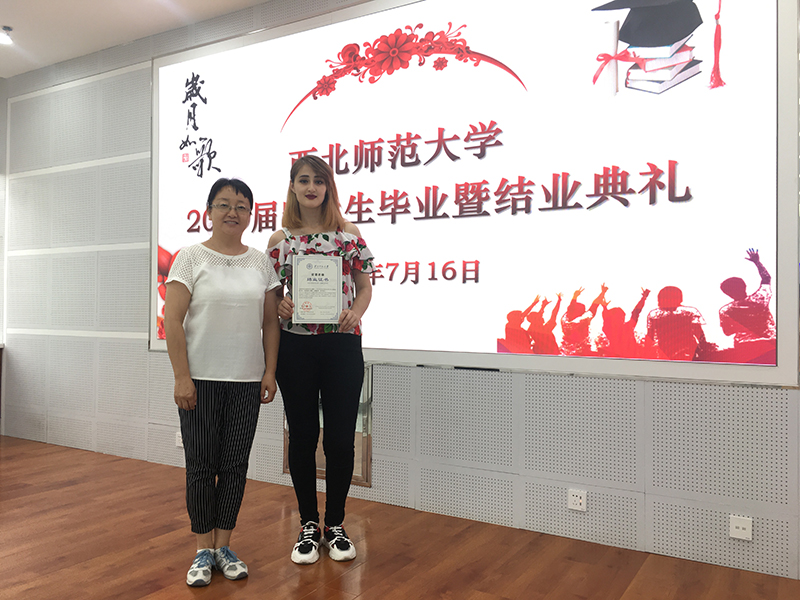 畢業(yè)典禮在留學生視頻播放中開始,視頻內容真實,情真意切,如實記錄了留學生在華學習、生活的點點滴滴,展示了“一帶一路”合作倡議下教育對外開放的成果。西北師范大學國際文化交流學院書記李東海宣讀結業(yè)生名單,我院19級5名留學生赫然在列。西北師范大學國際合作與交流處處長王君朝向留學生祝詞,對留學生經(jīng)過努力學習、順利畢業(yè)表示衷心祝賀。留學生代表用流利漢語發(fā)言,既反映了漢語學習的效果,也表達了對漢語學習生活的留戀,對學校培育的感激,對中國政府和中國人民對外友好的真心感謝。留學生在激動喜悅的心情中領取了結業(yè)證書及紀念品。