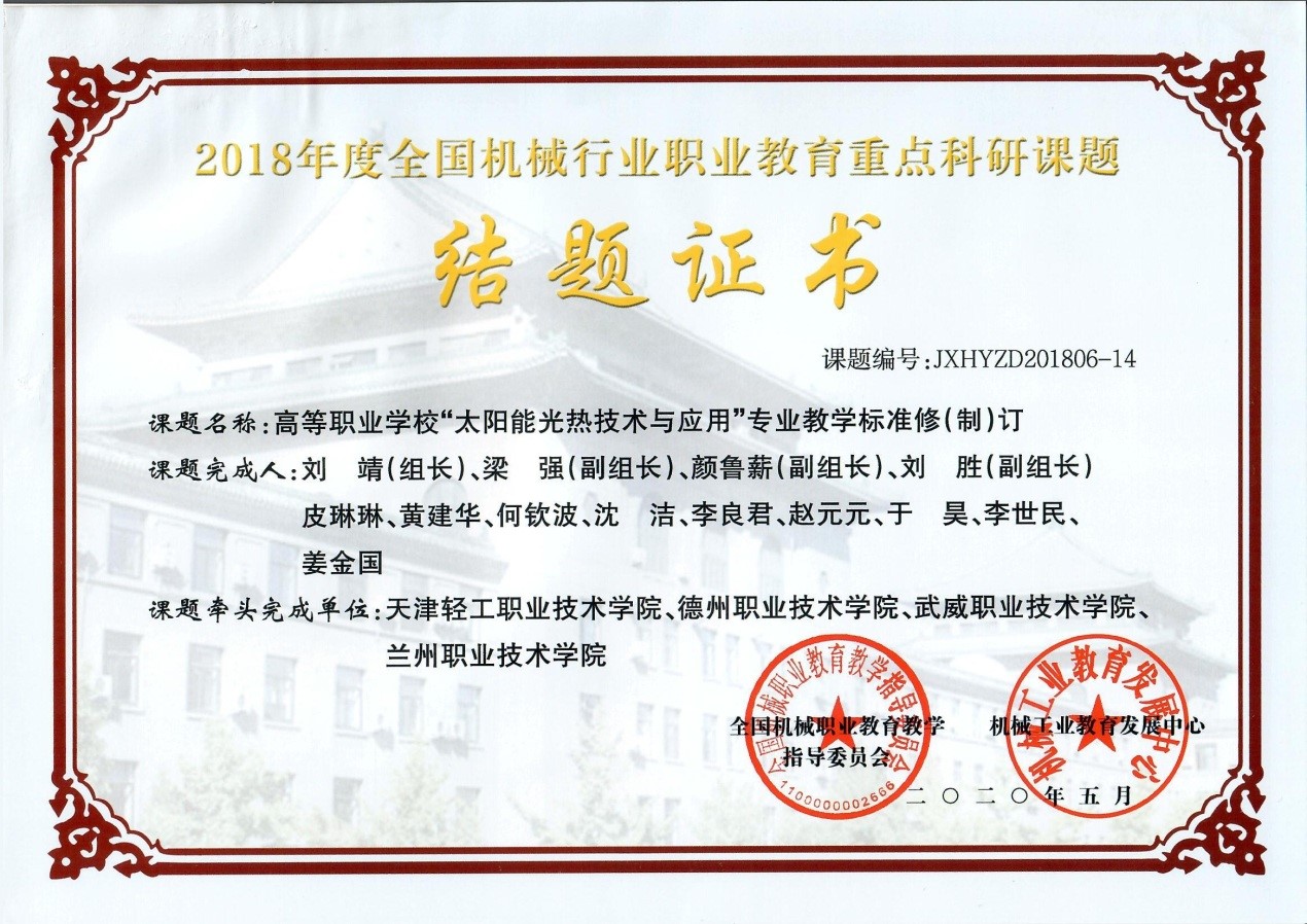 “太陽能光熱技術(shù)與應(yīng)用”專業(yè)國家教學(xué)標(biāo)準(zhǔn)通過專家評(píng)審