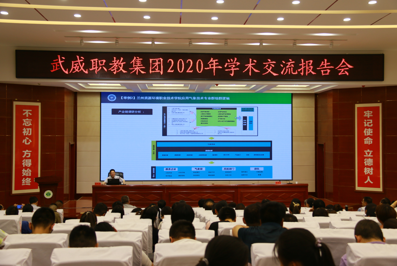 7月11日上午,學院在大學生活動中心菁英廳舉辦“第35期綠洲講壇暨雙高專業(yè)群建設專題講座”,邀請到蘭州資源環(huán)境職業(yè)技術學院黨委委員、副院長宋元文教授作“基于專業(yè)群發(fā)展的新時代高職院校建設”的專題報告。學院黨委書記、院長趙明主持報告會,黨委副書記翟存祥,黨委委員、副院長田迎春、何毅、張開禮、王守云,武威職教集團成員單位代表,學院各部門和教學院系負責人、專業(yè)負責人和教師代表共計200余人參加了報告會。