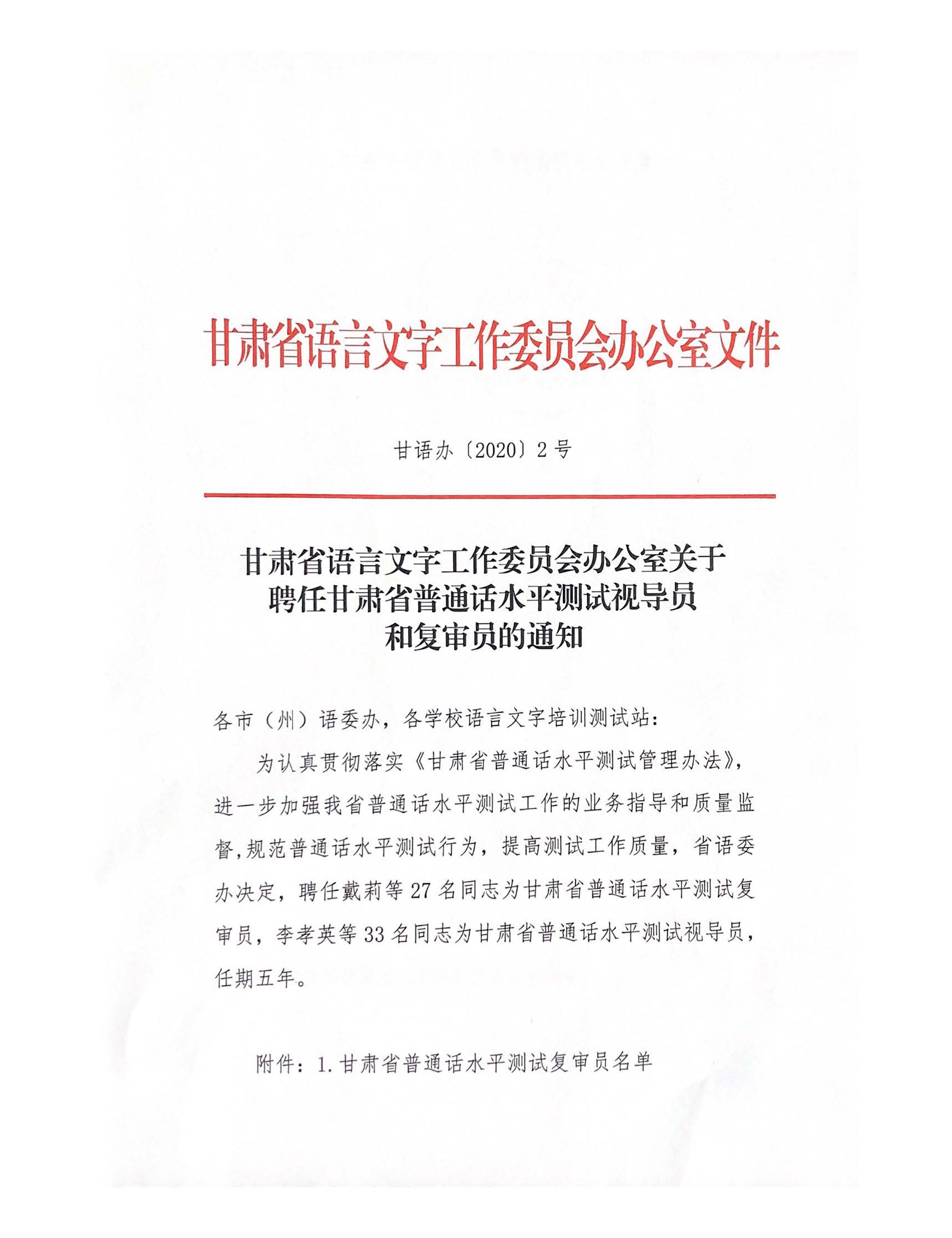 6月24日,我院護理系教師趙穎教授獲得甘肅省普通話水平測試復審員資格。根據(jù)《甘肅省語言文字工作委員會辦公室關(guān)于聘任甘肅省普通話水平測試視導員和復審員的通知》評選條件,學院組織推薦趙穎老師為“甘肅省普通話水平測試復審員”。經(jīng)甘肅省語言文字工作委員會評審,趙穎老師獲得甘肅省普通話水平測試復審員”資格,這是我院語言文字工作方面產(chǎn)生的第一位“省級測試復審員”。