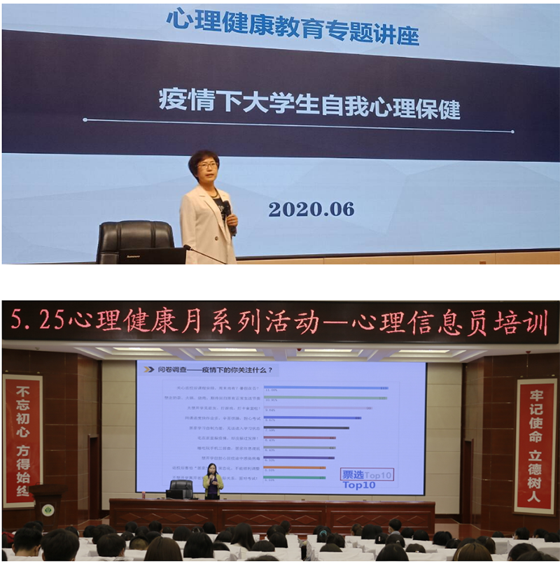 2020年6月15日,6月16日晚上,心理健康教育中心秦娜老師對各班心理信息員就疫情期間工作進行強化培訓。付成榮老師以《疫情下如何做好自我保健》為題,為200多名同學們講解了疫情期間常見的心理問題、學習心理調(diào)適以及如何培養(yǎng)積極心理品質(zhì)等,倡導健康的生活理念。