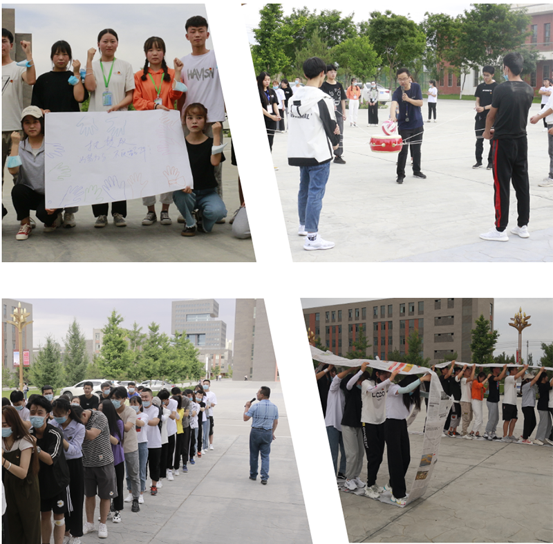 6月19日、6月20日下午在大學生活動中心前廣場開展“釋放壓力、放飛心靈”素質(zhì)拓展活動?;顒影ㄆ票F隊建設、風火輪大PK、同心協(xié)力創(chuàng)輝煌(鼓動人心)、分享五個環(huán)節(jié)。