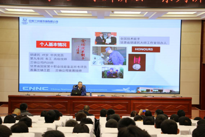 最后,翟存祥教授為胡建民頒發(fā)聘書,特聘請胡建民為武威職業(yè)學(xué)院人才培養(yǎng)技能大師。翟存祥指出,校企合作,相互支持,共同發(fā)展是校企互贏的發(fā)展模式。中科低碳新能源技術(shù)學(xué)院同中科院和蘭鈾公司合作,為同學(xué)們提供了優(yōu)質(zhì)教育資源、更高更好的發(fā)展平臺,技藝精湛的教師團(tuán)隊。希望同學(xué)們珍惜機遇,學(xué)習(xí)胡大師學(xué)習(xí)中嚴(yán)謹(jǐn)?shù)闹螌W(xué)態(tài)度,實踐中“斤斤計較”、精益求精的工匠精神,生活中敞開胸懷的人生態(tài)度,成長為優(yōu)秀技能人才。