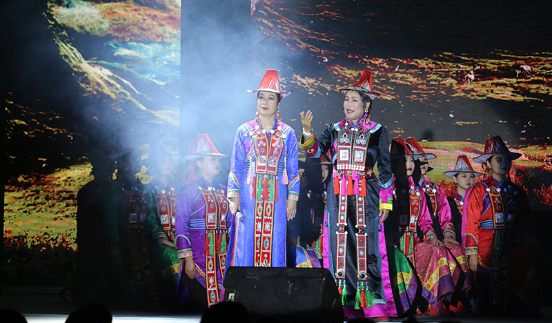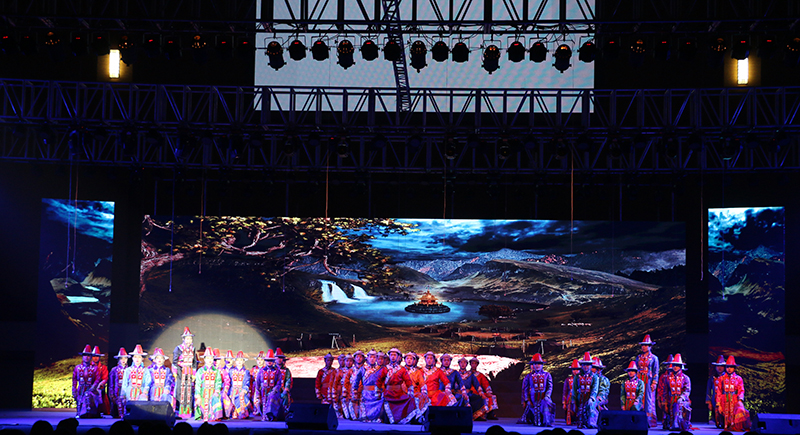 原創(chuàng)合唱音詩(shī)《薩娜瑪珂》取材于甘肅省獨(dú)有的少數(shù)民族裕固族的同名史詩(shī),以裕固族民族女英雄為人物形象,以裕固族民族音樂為音樂基調(diào),以感人至深的故事情節(jié)為創(chuàng)意線索,全劇采用四部合唱、女高音領(lǐng)唱、男中音領(lǐng)唱以及朗誦等富有獨(dú)特表現(xiàn)力的藝術(shù)形式,生動(dòng)再現(xiàn)了薩娜瑪珂的壯美人生和傳奇故事。原生態(tài)的民族音樂、如詩(shī)如畫的舞美、濃郁的民族風(fēng)情,深深地感染了現(xiàn)場(chǎng)師生,贏得了陣陣熱烈的掌聲。