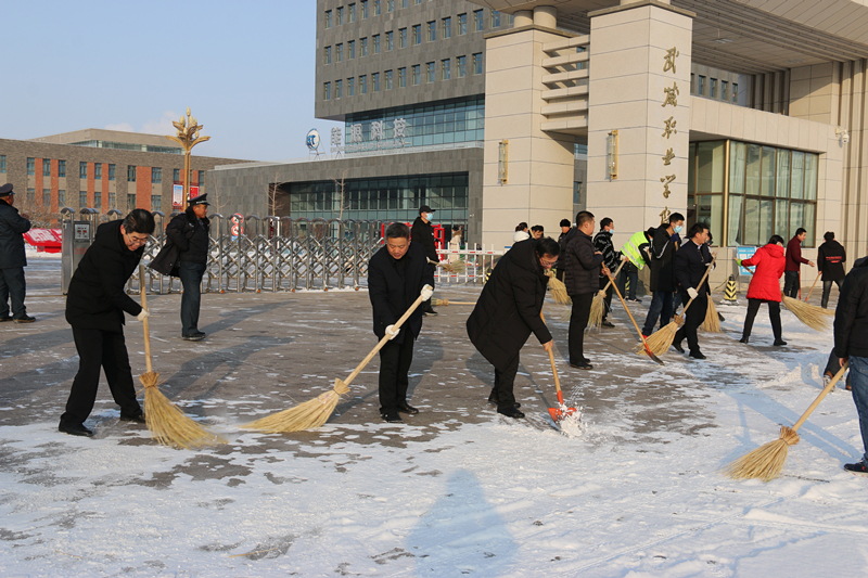 12月1日,我市出現(xiàn)降雪、降溫天氣,致使學(xué)院道路積雪結(jié)冰,給學(xué)院師生出行帶來不便。2日早上,學(xué)院領(lǐng)導(dǎo)及部分師生一起在校園內(nèi)外道路清掃積雪、鏟除結(jié)冰,為師生和周圍市民出行提供便利。