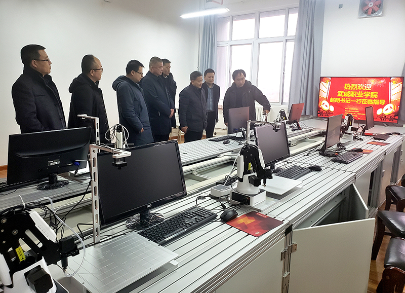 在韓九強(qiáng)團(tuán)隊(duì)實(shí)驗(yàn)室,工作小組聆聽了韓九強(qiáng)教授視頻講座,并實(shí)地考察交流了人工智能技術(shù)發(fā)展。趙明就高職院校人工智能相關(guān)專業(yè)開設(shè)與專業(yè)發(fā)展前景同韓九強(qiáng)進(jìn)行了深入交流。