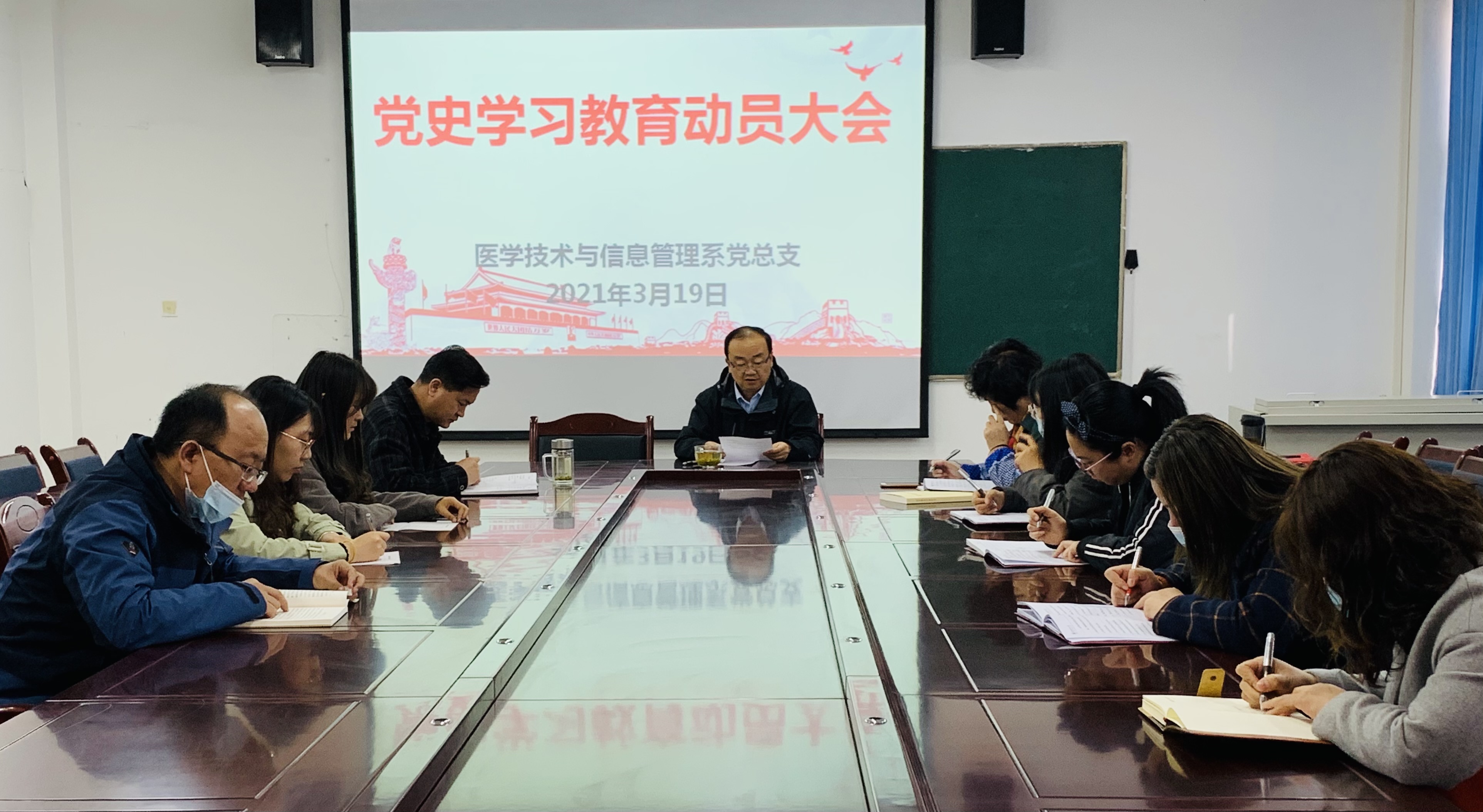 3月19日下午,醫(yī)學(xué)技術(shù)與信息管理系黨總支召開(kāi)黨史學(xué)習(xí)教育動(dòng)員大會(huì),對(duì)我系開(kāi)展黨史學(xué)習(xí)教育進(jìn)行全面動(dòng)員部署。大會(huì)由系黨總支書(shū)記黃文源同志主持并作動(dòng)員講話,醫(yī)學(xué)技術(shù)與信息管理系黨總支全體黨員參加動(dòng)員大會(huì)。