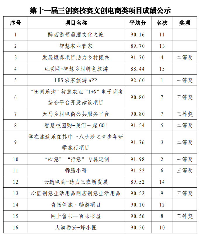 第十一屆三創(chuàng)賽武威職業(yè)學(xué)院校賽擬獲獎(jiǎng)項(xiàng)目及成績公示