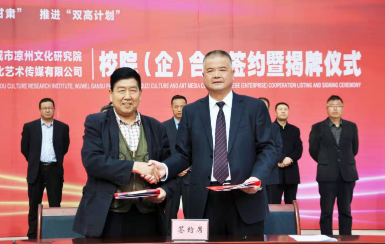 此次開啟院、校、企合作,旨在充分發(fā)揮各自資源優(yōu)勢(shì),在研究、挖掘、整理、弘揚(yáng)涼州文化,加強(qiáng)在產(chǎn)、學(xué)、研、用方面的深入交流合作,在科學(xué)研究、文化傳播交流、課程開發(fā)、實(shí)習(xí)基地建設(shè)、師資及人才培養(yǎng)、專業(yè)技能實(shí)訓(xùn)等高水平建設(shè)方面,豐富合作途徑、創(chuàng)新合作方法,進(jìn)行深度合作共建,對(duì)于“雙高”院校建設(shè)和地方文化事業(yè)蓬勃發(fā)展具有重要意義。