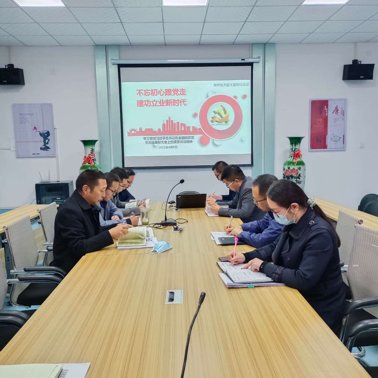 4月8日,電子信息工程系組織學(xué)習(xí)習(xí)近平總書記在全國(guó)脫貧攻堅(jiān)表彰大會(huì)上的講話精神,全體教師黨員參加學(xué)習(xí),電子信息工程系黨總支書記袁青年主持學(xué)習(xí)。