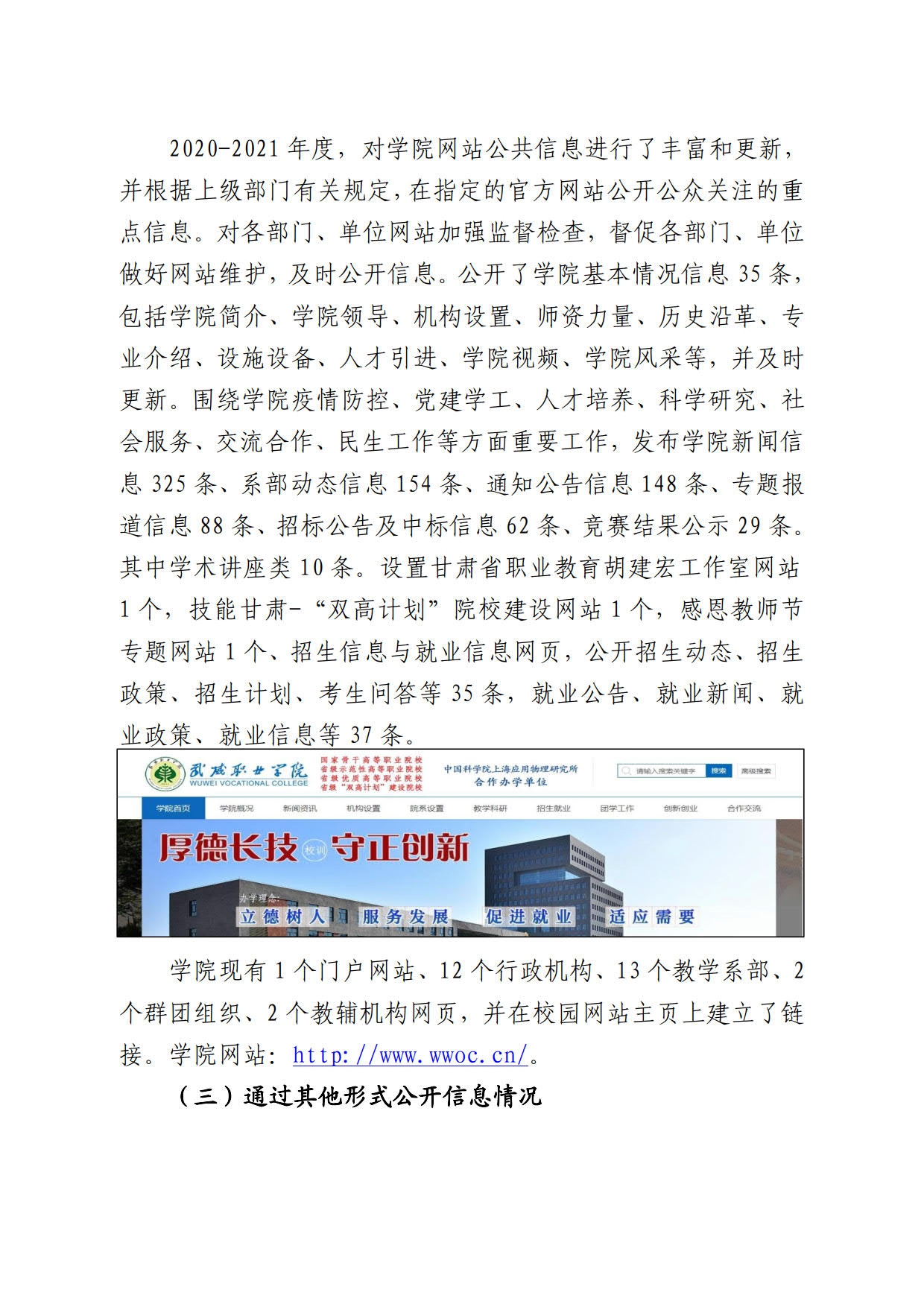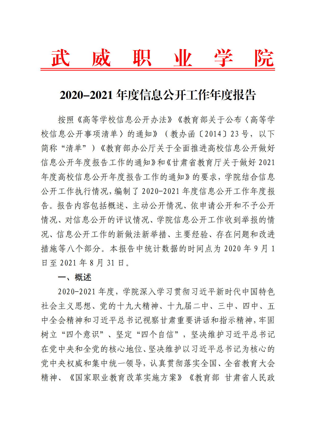 武威職業(yè)學(xué)院2020-2021年度信息公開工作年度報(bào)告