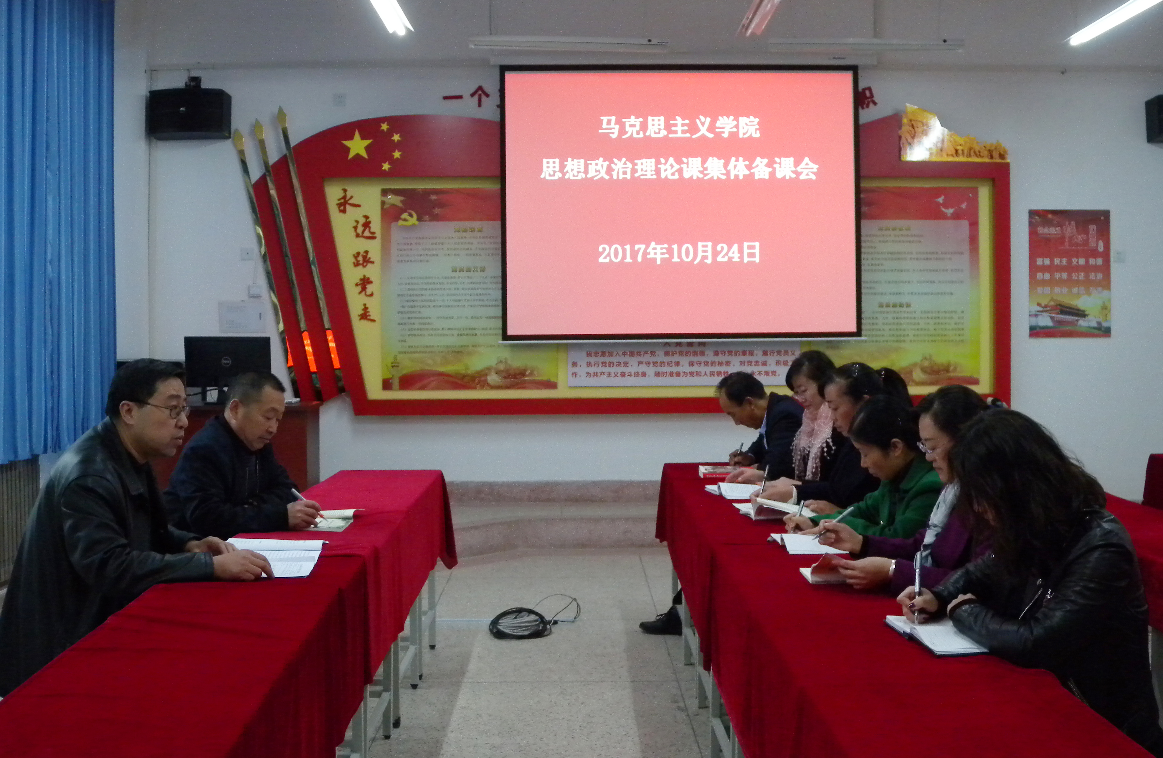 為深入學習十九大會議精神,認真貫徹全國全省高校思想政治工作會議精神,打贏我院思政課質量年建設的攻堅戰(zhàn),提高我院思政課教學質量和水平,10月24日下午,馬克思主義學院在勵勤樓209會議室召開了思政課集體備課會。會議由馬克思主義學院副院長胡靜峰主持,全體思政課專兼職教師參加了備課會。