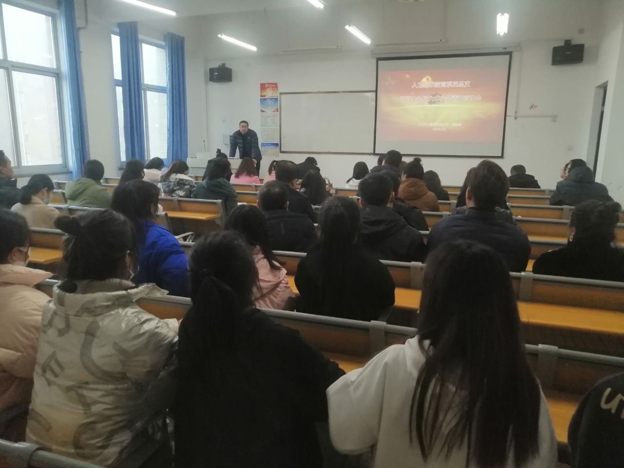為深入學習宣傳貫徹中國共產(chǎn)黨十九屆六中全會精神,把全系師生的思想統(tǒng)一到全會精神上來,把智慧和力量凝聚到實現(xiàn)全會確定的各項目標任務上來。2021年12月9日人文藝術教育系舉辦十九屆六中全會精神宣講報告會,由人文藝術教育系黨總支書記胡靜峰同志在勵勤樓309多媒體教室為全體黨員作了一場有思想、有溫度、有筋骨、接地氣的理論宣講報告,人文藝術教育系全體教師、輔導員、學生代表和外聘教師近百人參加了報告會。