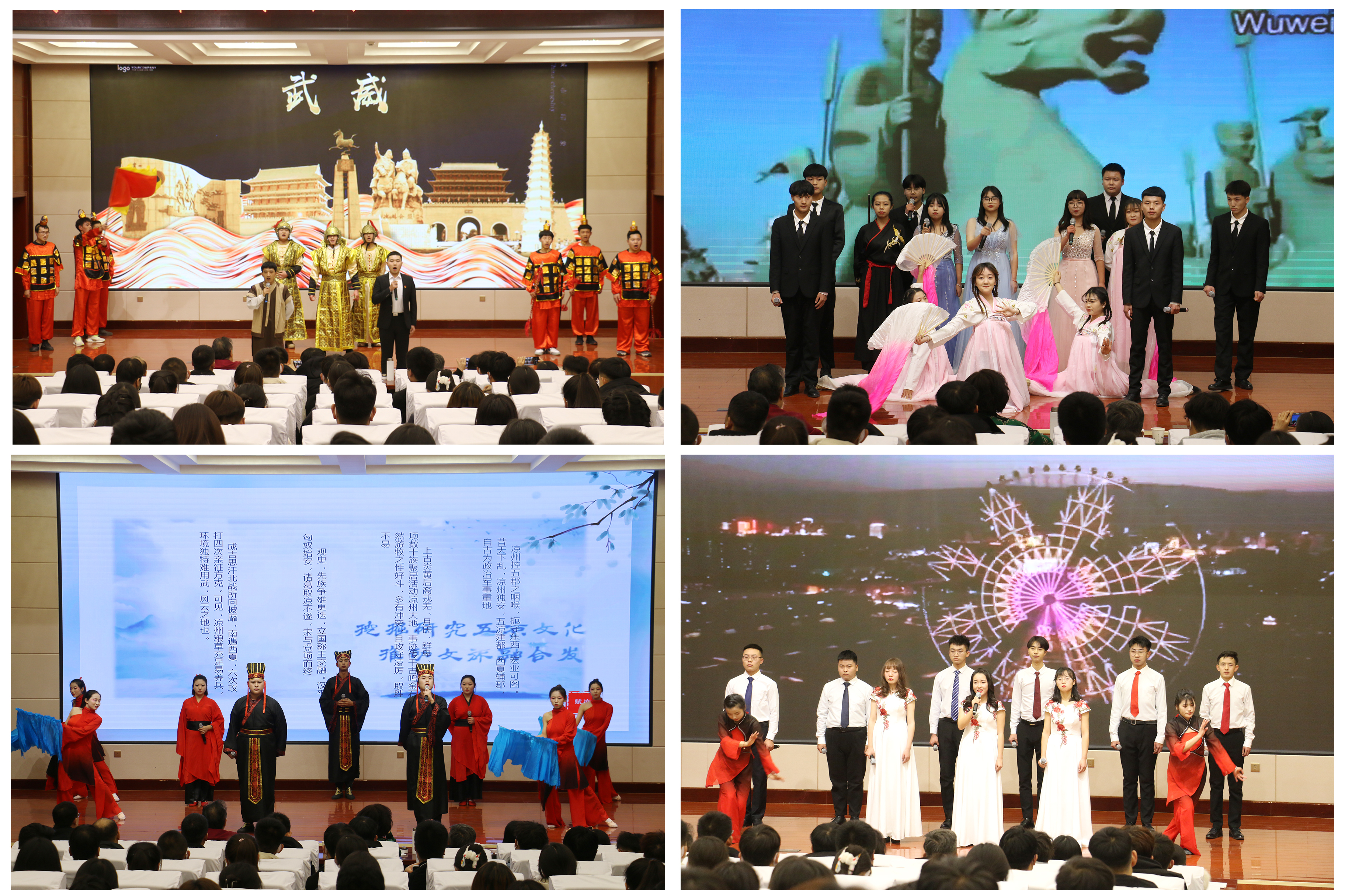 比賽現(xiàn)場(chǎng)精彩紛呈,高潮迭起,來(lái)自11個(gè)教學(xué)院系推選的節(jié)目匯聚菁英廳,以配樂(lè)吟誦、伴舞、書法、武術(shù)、情景劇表演等形式,上演“車馬相交錯(cuò),歌吹日縱橫”的涼州遺韻。一首首字正腔圓的吟誦、一場(chǎng)場(chǎng)聲情并茂的演繹,全方位展示了涼州文化深厚的底蘊(yùn)和鮮明的地域特色。