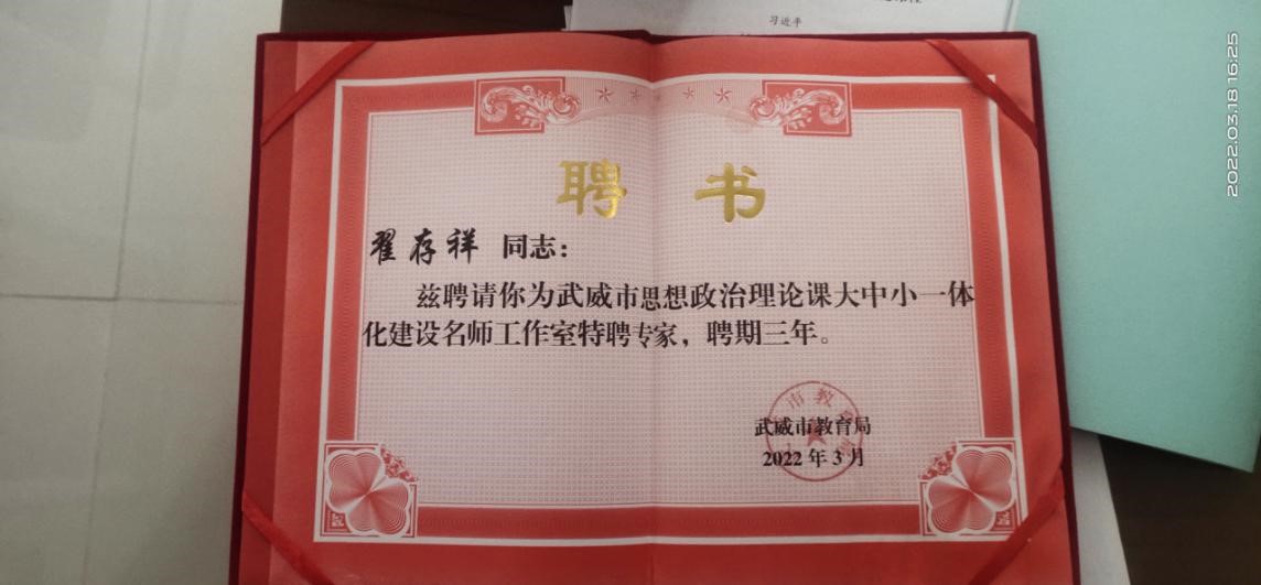 會(huì)議學(xué)習(xí)了習(xí)近平總書記在學(xué)校思想政治理論課教師座談會(huì)上的重要講話精神,總結(jié)了近年來武威市思政課建設(shè)取得的成績,各縣區(qū)交流了經(jīng)驗(yàn)做法,安排部署了下一階段工作。同時(shí),舉行了武威市思想政治理論課大中小一體化建設(shè)名師工作室授牌和名師工作室特聘專家聘任儀式。學(xué)校思政課名師工作室負(fù)責(zé)人、黨委副書記翟存祥教授被聘為武威市思想政治理論課大中小一體化建設(shè)名師工作室特聘專家。