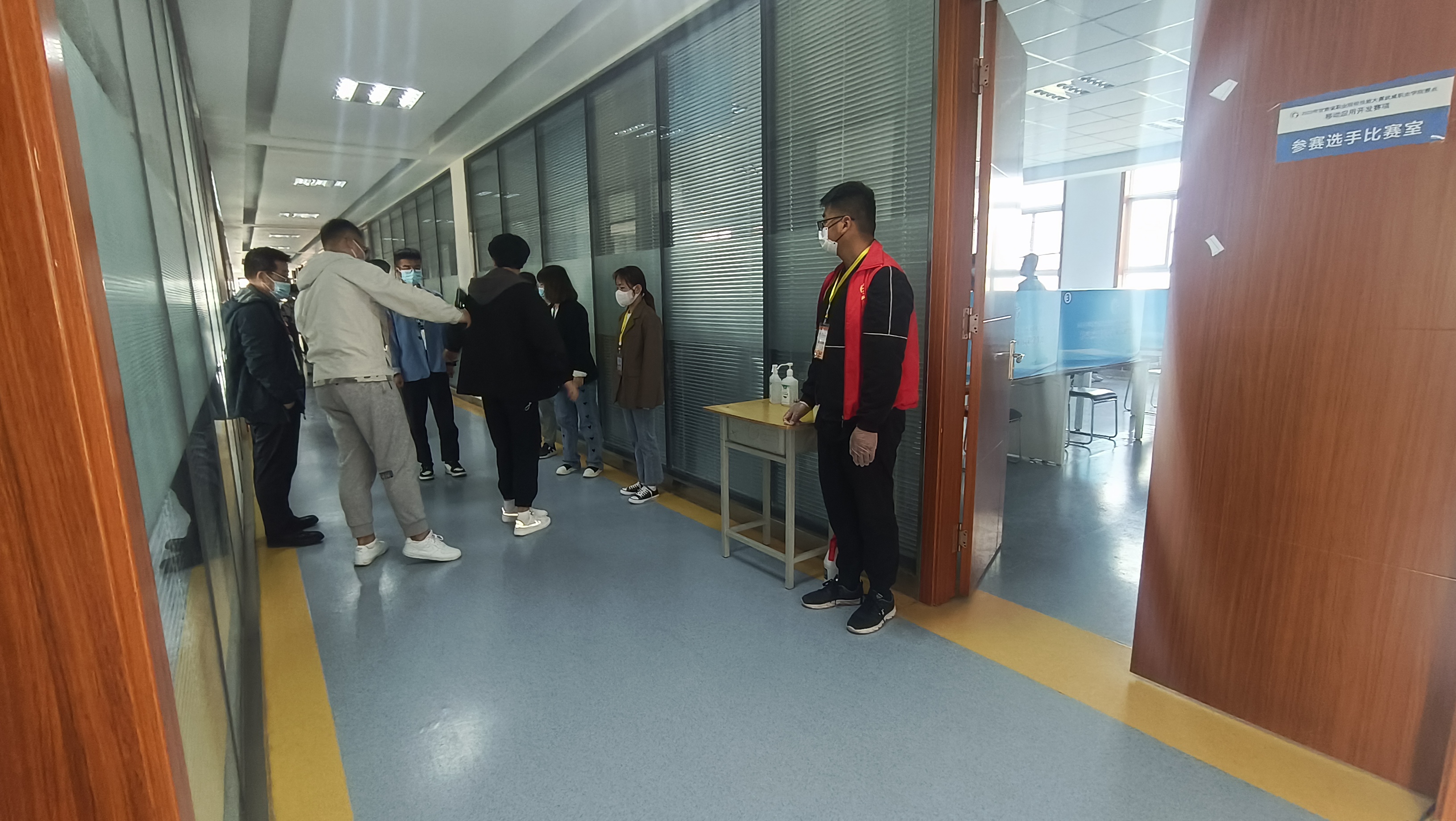 2022年甘肅省職業(yè)院校技能大賽武威職業(yè)學(xué)院賽點(diǎn)移動(dòng)應(yīng)用開(kāi)發(fā)賽項(xiàng)正式開(kāi)賽,檢錄組工作人員提前將工作細(xì)化到個(gè)人,參賽選手到達(dá)賽點(diǎn),按照疫情防控要求,認(rèn)真核對(duì)了相關(guān)證件,并有序進(jìn)行了一次、二次加密。