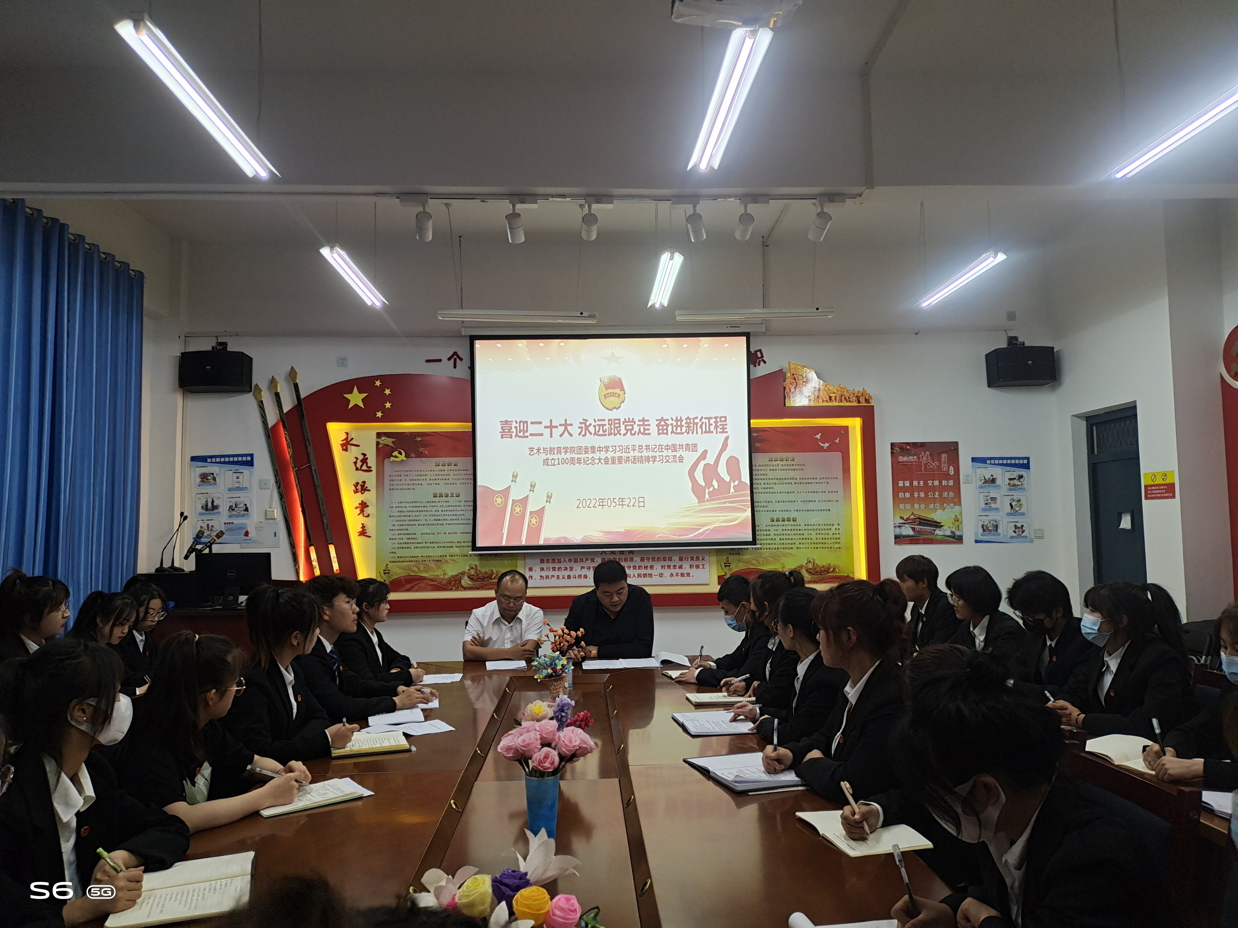 2022年5月22日晚,藝術(shù)與教育學(xué)院團(tuán)委以“喜迎二十大,奮進(jìn)新征程,永遠(yuǎn)跟黨走”為主題,開(kāi)展習(xí)近平總書記在慶祝中國(guó)共產(chǎn)主義青年團(tuán)成立100周年大會(huì)上的重要講話精神學(xué)習(xí)研討交流會(huì),參會(huì)人員由藝術(shù)與教育學(xué)院副院長(zhǎng)李欣,團(tuán)委書記唐鑫基,20、21級(jí)各班團(tuán)支部書記及優(yōu)秀團(tuán)員代表、預(yù)備黨員、入黨積極分子和入團(tuán)積極分子代表組成。