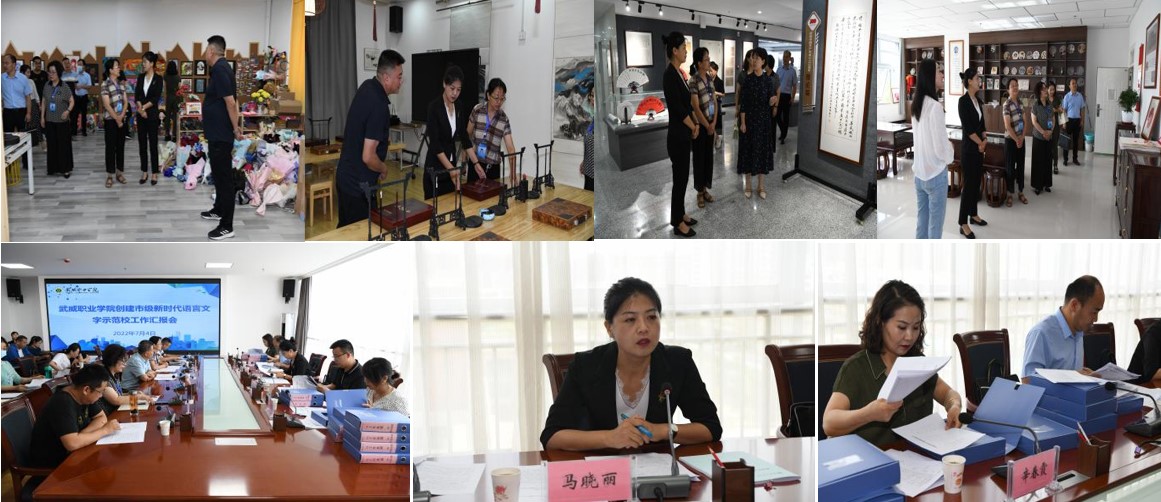 7月4日上午,武威市教育局、市語委辦主任及專家一行5人對學校創(chuàng)建“市級新時代語言文字示范?!惫ぷ鬟M行評估檢查。
