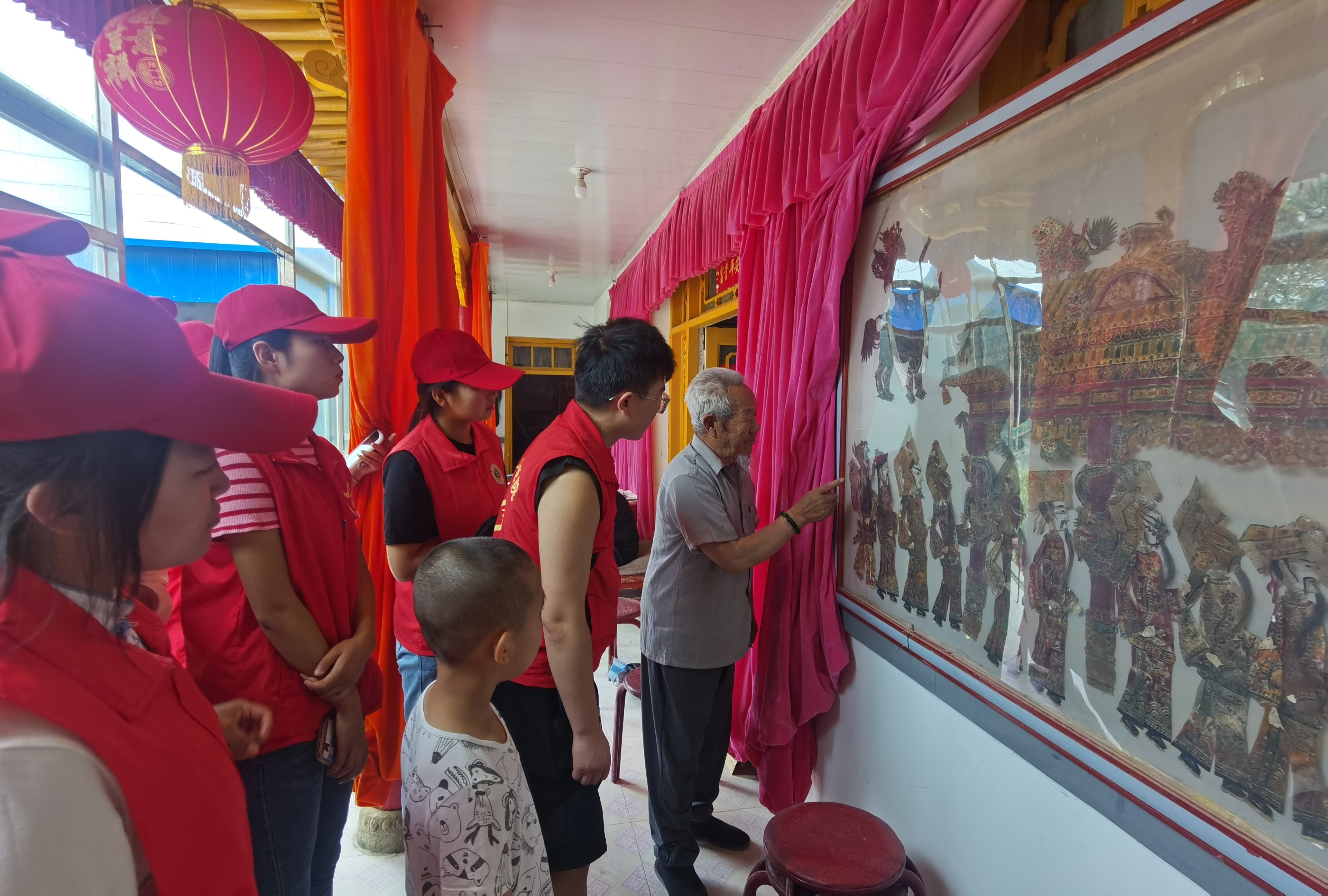 隊(duì)員們目不轉(zhuǎn)睛地被幕布上惟妙惟肖的人物形象和流暢的動(dòng)作所深深吸引。表演結(jié)束后,隊(duì)員們意猶未盡,圍在馬老身邊請(qǐng)教皮影的制作方法以及表演皮影的技巧,在他的指導(dǎo)下,體驗(yàn)皮影人物走路、翻身、翻跟斗等動(dòng)作展示過(guò)程花樣百出、妙趣橫生,更加激發(fā)了實(shí)踐團(tuán)隊(duì)員對(duì)學(xué)習(xí)傳承傳統(tǒng)文化的興趣和動(dòng)力。