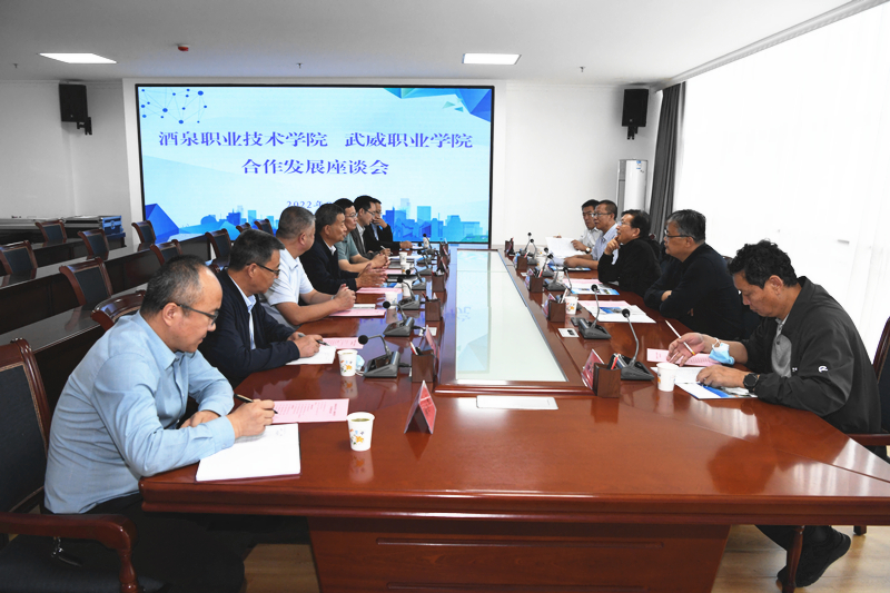 易志軍一行先后到學校紅色文化藝術(shù)館、翟存祥思想政治理論課名師工作室、武威市體育場、旅游管理專業(yè)實訓室等地考察并在能源科技樓811會議室召開了兩校合作發(fā)展座談會,趙明向易志軍一行詳細介紹了學校近年來改革發(fā)展、人才培養(yǎng)、招生就業(yè)、合作辦學、“雙高計劃”學校建設(shè)等情況。易志軍就酒泉職業(yè)技術(shù)學院建設(shè)發(fā)展情況進行了詳細介紹。雙方就河西走廊職業(yè)教育與區(qū)域產(chǎn)業(yè)互動發(fā)展、融合發(fā)展、高質(zhì)量發(fā)展的路徑和方法進行了深入探討,并交流了學校建設(shè)和管理方面好的經(jīng)驗和做法。