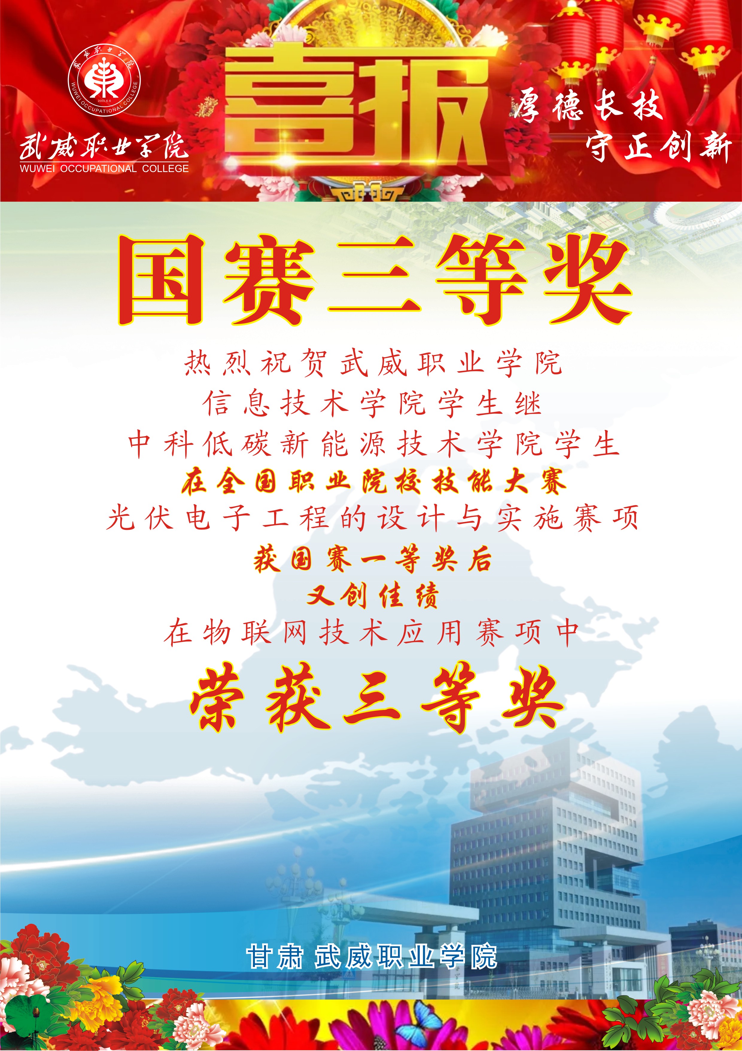 武威職業(yè)學(xué)院榮獲全國(guó)職業(yè)院校技能大賽國(guó)賽一等獎(jiǎng)