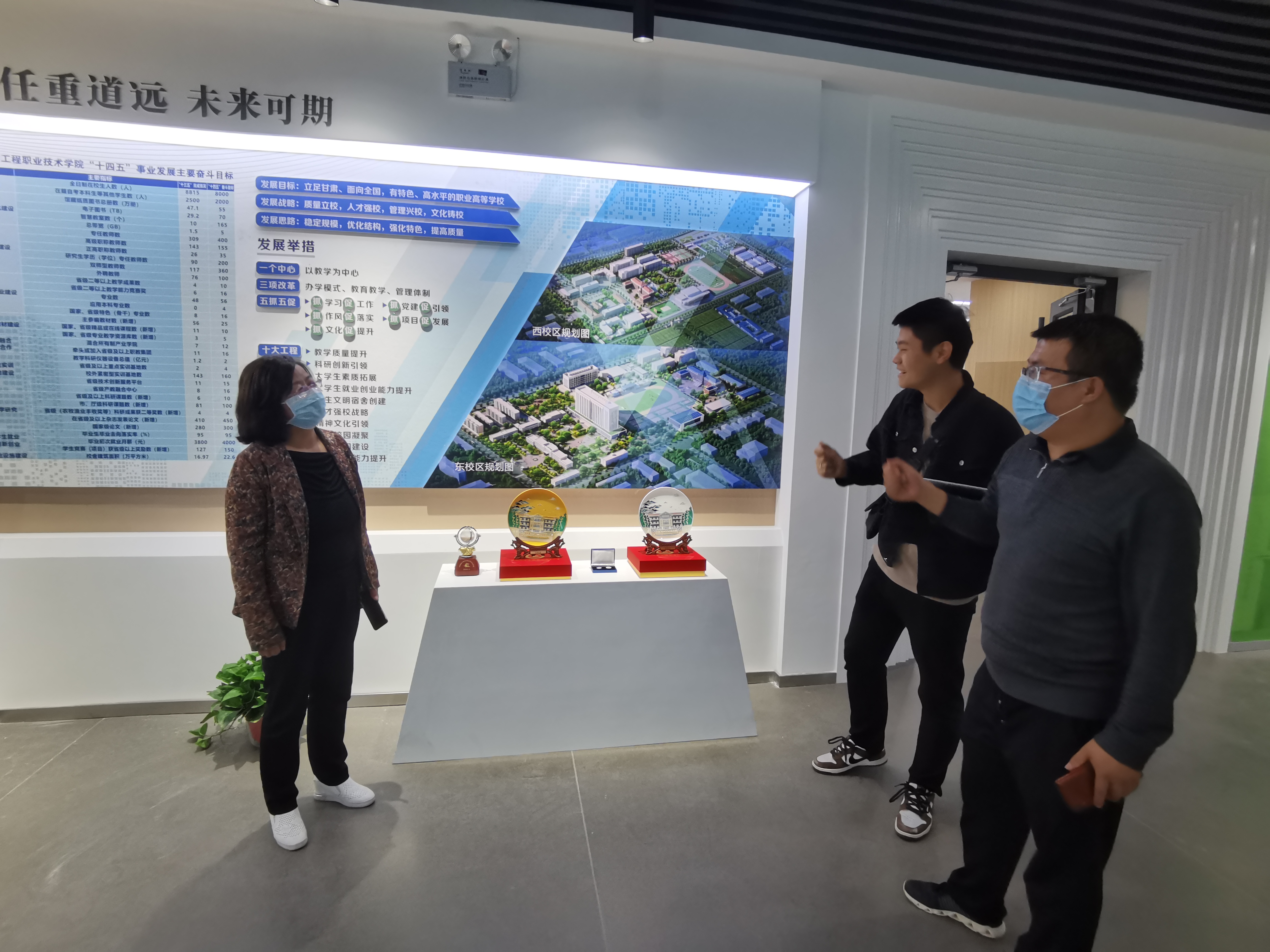 為全面推進(jìn)“雙高計劃”學(xué)校建設(shè),提升圖書館服務(wù)水平,營造“書香校園”,將圖書館打造成人性化、智能化、專業(yè)化的綠色學(xué)習(xí)空間。近日,圖書館館長楊如松、副館長蔡濟(jì)眾、館員楊建盛三人到甘肅省畜牧工程職業(yè)技術(shù)學(xué)院圖書館考察學(xué)習(xí),在甘肅省畜牧工程職業(yè)技術(shù)學(xué)院圖書館館長解玉寶陪同下,參觀了該校圖書館讀書吧、校史館、黨史館、“挑戰(zhàn)杯”獲獎作品展覽館等處,解玉寶講解了該館設(shè)計理念及建設(shè)過程中的側(cè)重點(diǎn)和展示重點(diǎn)。楊如松就現(xiàn)在圖書館裝發(fā)展趨勢、圖書館管理辦法、學(xué)生借閱量等實際問題同解玉寶進(jìn)行了相互交流。