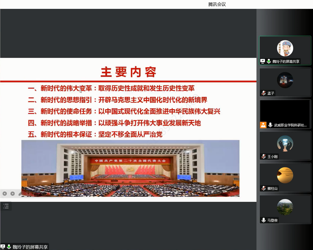 12月23日,按照學(xué)校黨委工作部署,教學(xué)管理第二黨支部組織開展黨的二十大精神宣講宣傳活動,會議由黨支部書記董鵬主持,邀請了學(xué)校黨的二十大精神宣講團成員魏玲,支部全體黨員和入黨積極分子通過網(wǎng)絡(luò)視頻參加學(xué)習(xí),會議精神宣傳至支部全體人員。