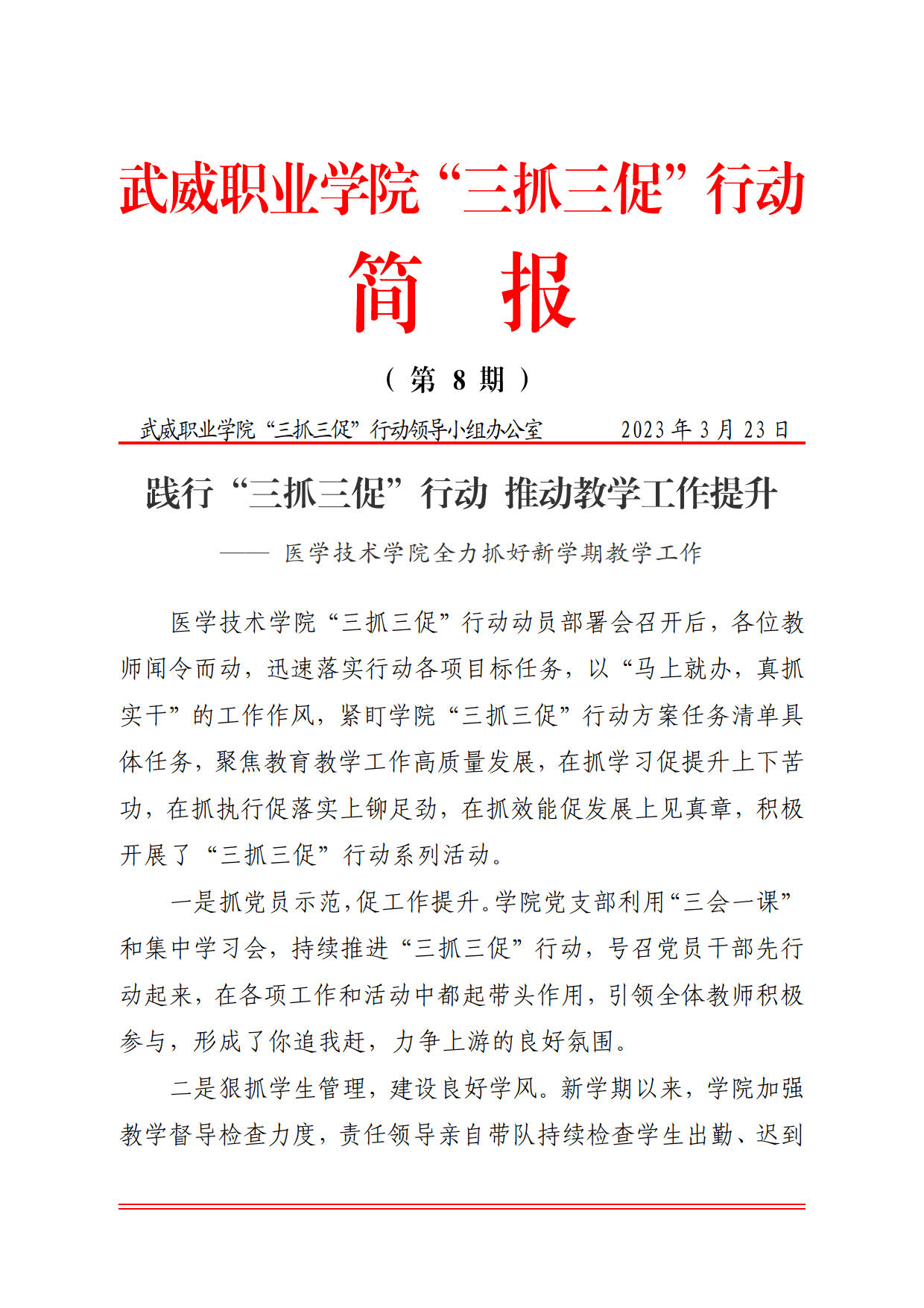 簡(jiǎn)報(bào)第8期:踐行“三抓三促”行動(dòng) 推動(dòng)教學(xué)工作提升