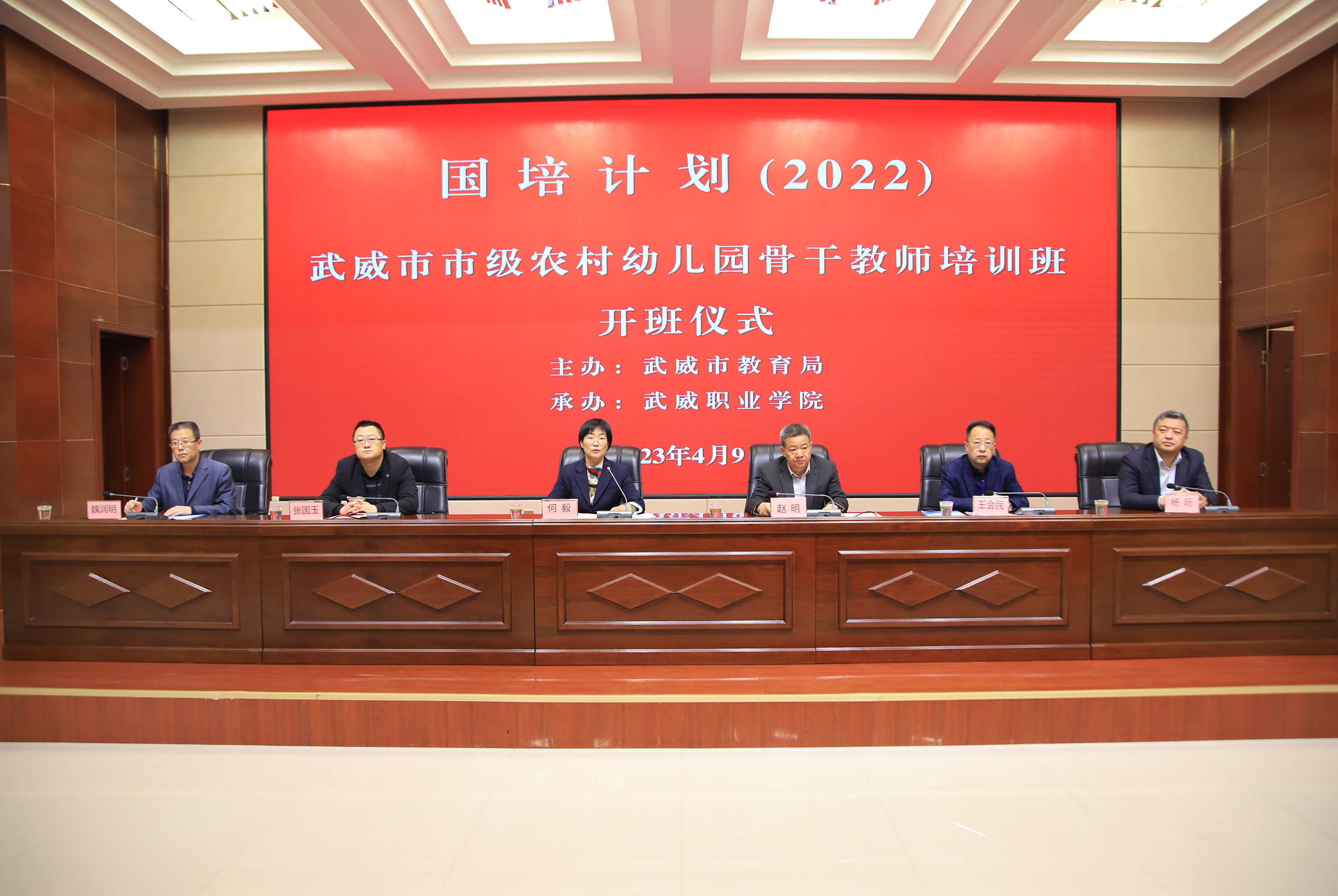 2023年4月9日上午,“國培計劃(2022)”武威市市級農村幼兒園骨干教師培訓班開班儀式在學院菁英廳舉辦,武威市教育局、武威職業(yè)學院領導及相關科室負責人參加開班儀式。