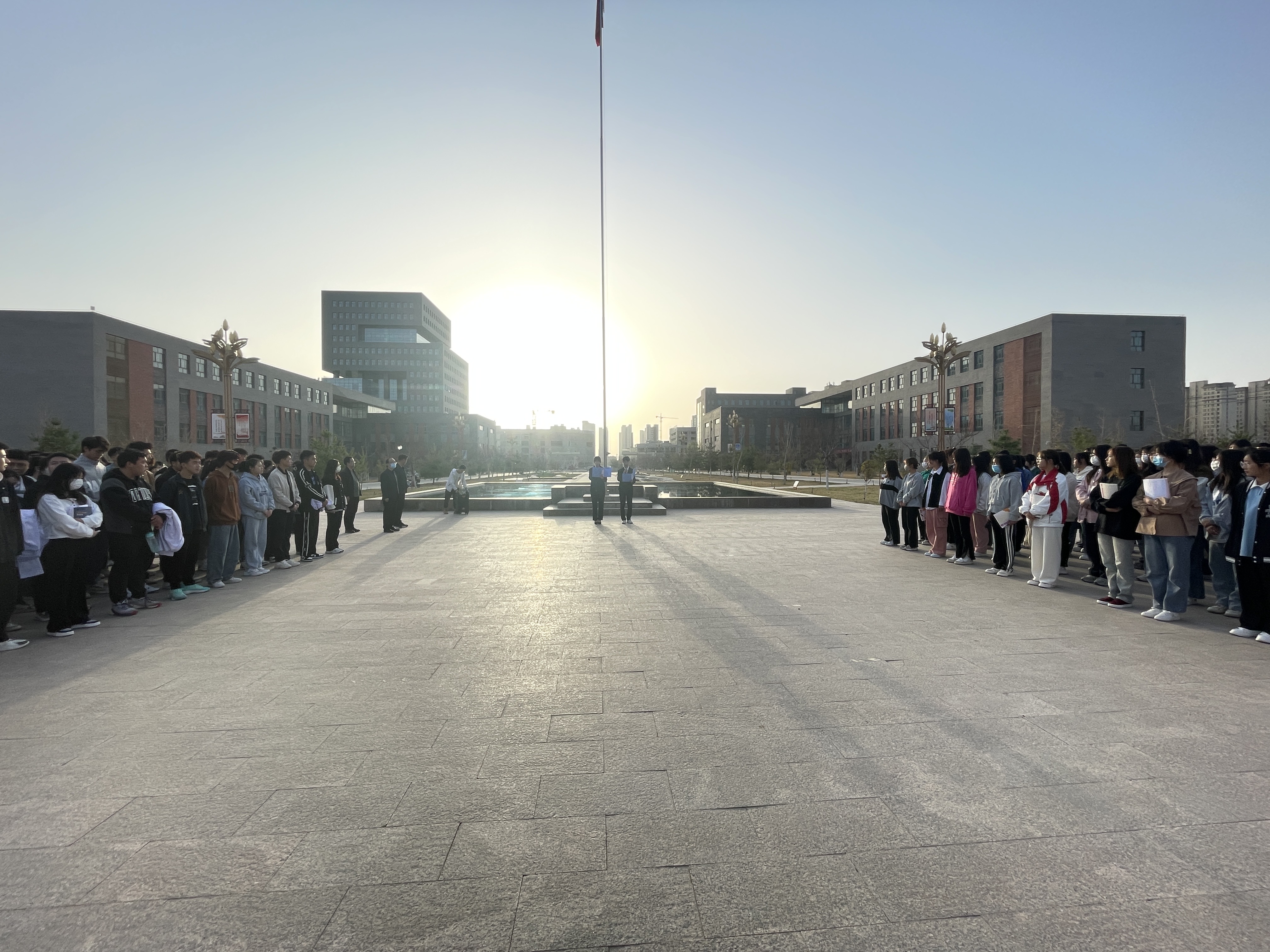 4月17日上午,醫(yī)學(xué)技術(shù)學(xué)院在學(xué)校圖書(shū)館東廣場(chǎng)舉行升國(guó)旗儀式,全體師生參加。