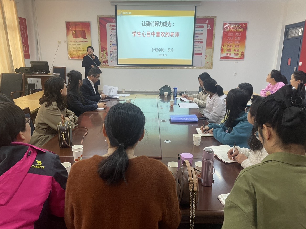 “拜師”活動(dòng)結(jié)束后,護(hù)理學(xué)院副教授段玲作了題為《讓我們努力成為學(xué)生心目中喜歡的老師》專題講座。