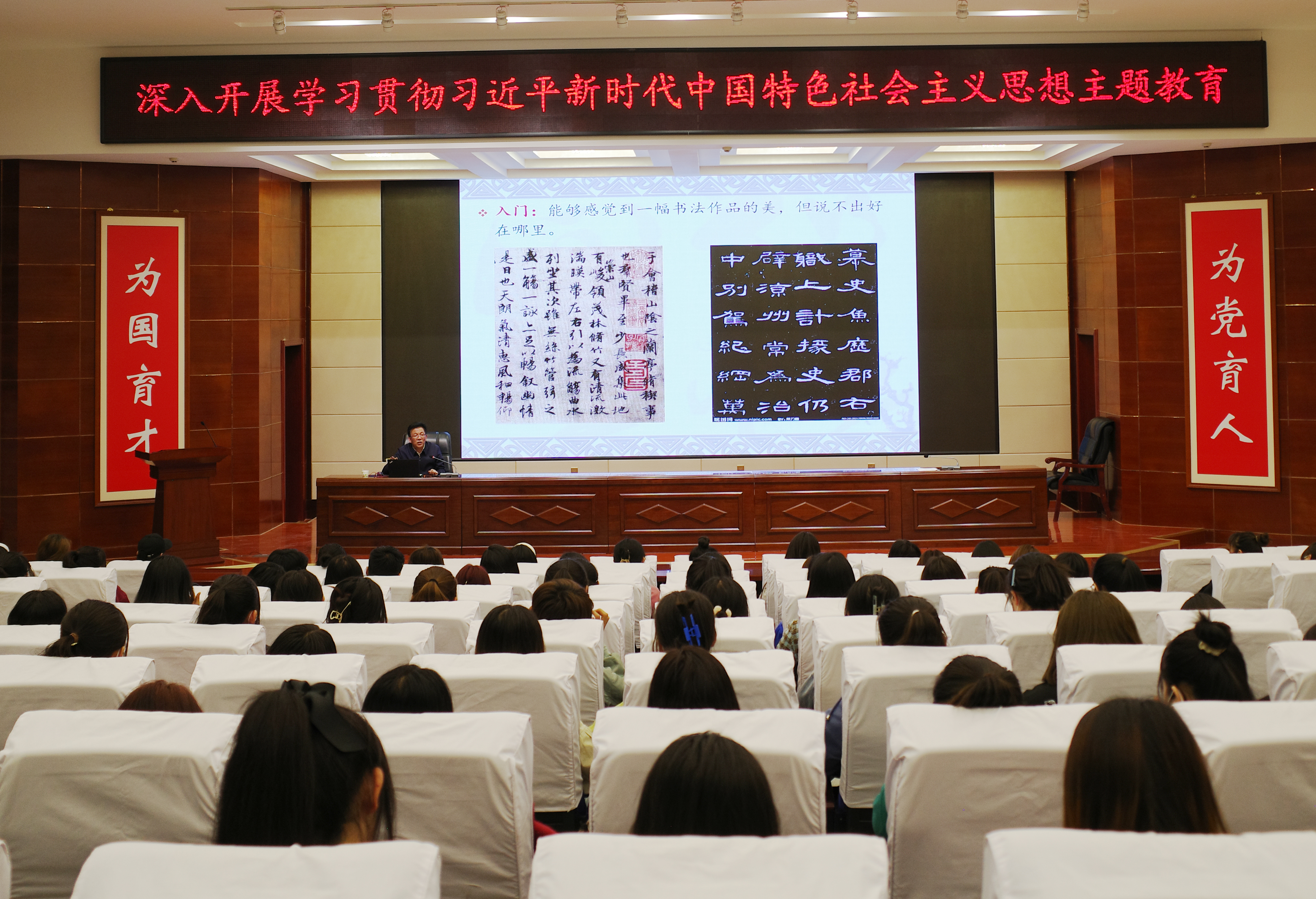 活動中,齊澤山在菁英廳為師生做了題為“如何欣賞書法作品”專題講座,他介紹了中國書法藝術(shù)的起源、傳統(tǒng)、特點,以《蘭亭序》《曹全碑》等多幅經(jīng)典書法作品為例,深入解析了書法藝術(shù)的魅力與內(nèi)涵,清晰呈現(xiàn)了中國書法悠久的歷史脈絡(luò),使師生們對中國書法藝術(shù)的起源與發(fā)展有了更加深刻地理解。講座引經(jīng)據(jù)典、風(fēng)趣幽默、親切自然,讓師生在輕松愉悅的氛圍中升華了對書法藝術(shù)的審美感受。師生們紛紛表示,此次講座是一次難得的學(xué)習(xí)機(jī)會,受益匪淺,對中國書法藝術(shù)有了更深入、更全面的了解。
