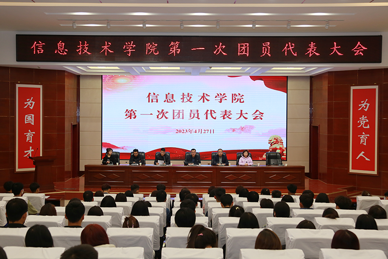 ?2023年4月27日晚,信息技術學院第一次團員代表大會暨學生代表大會在菁英廳隆重召開。學院黨支部、團委主要負責人及師生代表出席了大會,會議由李京靜主持。