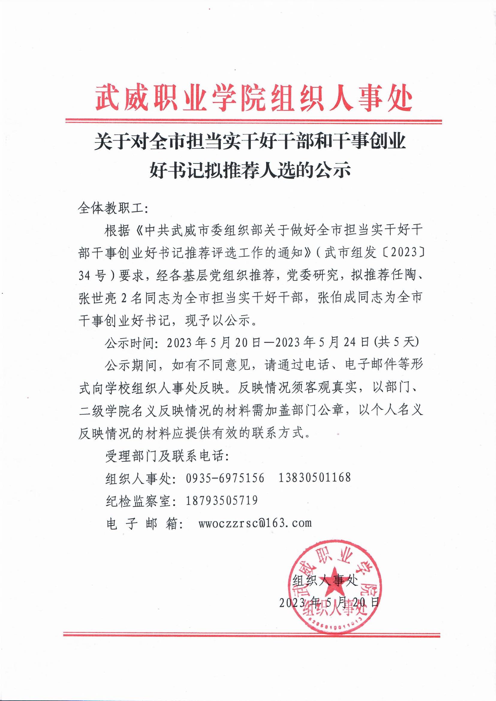 關于對全市擔當實干好干部和干事創(chuàng)業(yè)好書記擬推薦人選的公示