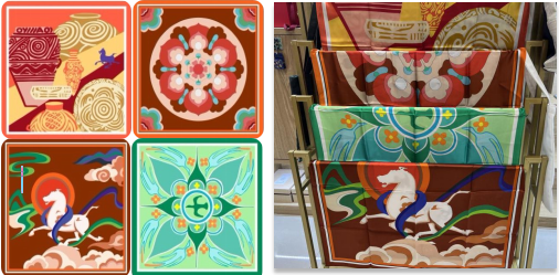 我校師生依托授權(quán)文物紋樣設(shè)計(jì)的“蓮花彩磚”“絢麗彩陶”“七彩天馬”“八鳥朝陽(yáng)”等文創(chuàng)作品,主題鮮明、形式多樣,充分展示了我校在文創(chuàng)產(chǎn)品開發(fā)領(lǐng)域的專業(yè)能力。
