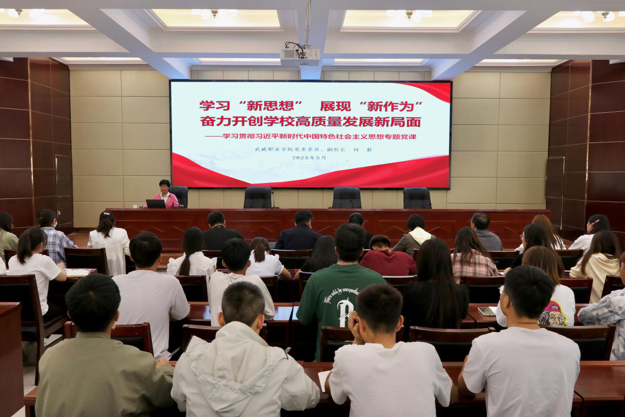 何毅強(qiáng)調(diào),在“新思想”的指引下,貫徹黨的教育方針、強(qiáng)化黨的全面領(lǐng)導(dǎo)、堅(jiān)持正確辦學(xué)方向、堅(jiān)持“立德樹(shù)人”,堅(jiān)持“舉旗幟、聚民心、育新人、興文化、展形象”,在“完善職業(yè)教育體系、加強(qiáng)專(zhuān)業(yè)建設(shè)、三教改革、建設(shè)雙師型教師隊(duì)伍、深化產(chǎn)教融合校企合作”等各項(xiàng)重點(diǎn)工作方面持續(xù)改革創(chuàng)新,特別是要推進(jìn)工作與人才培養(yǎng)全過(guò)程相互滲透、同向同行,不斷樹(shù)立師生的“職教自信”,全力以赴升辦武威職業(yè)技術(shù)大學(xué),開(kāi)創(chuàng)學(xué)校高質(zhì)量發(fā)展新局面,努力培養(yǎng)造就更多服務(wù)經(jīng)濟(jì)社會(huì)發(fā)展的技能人才、大國(guó)工匠。