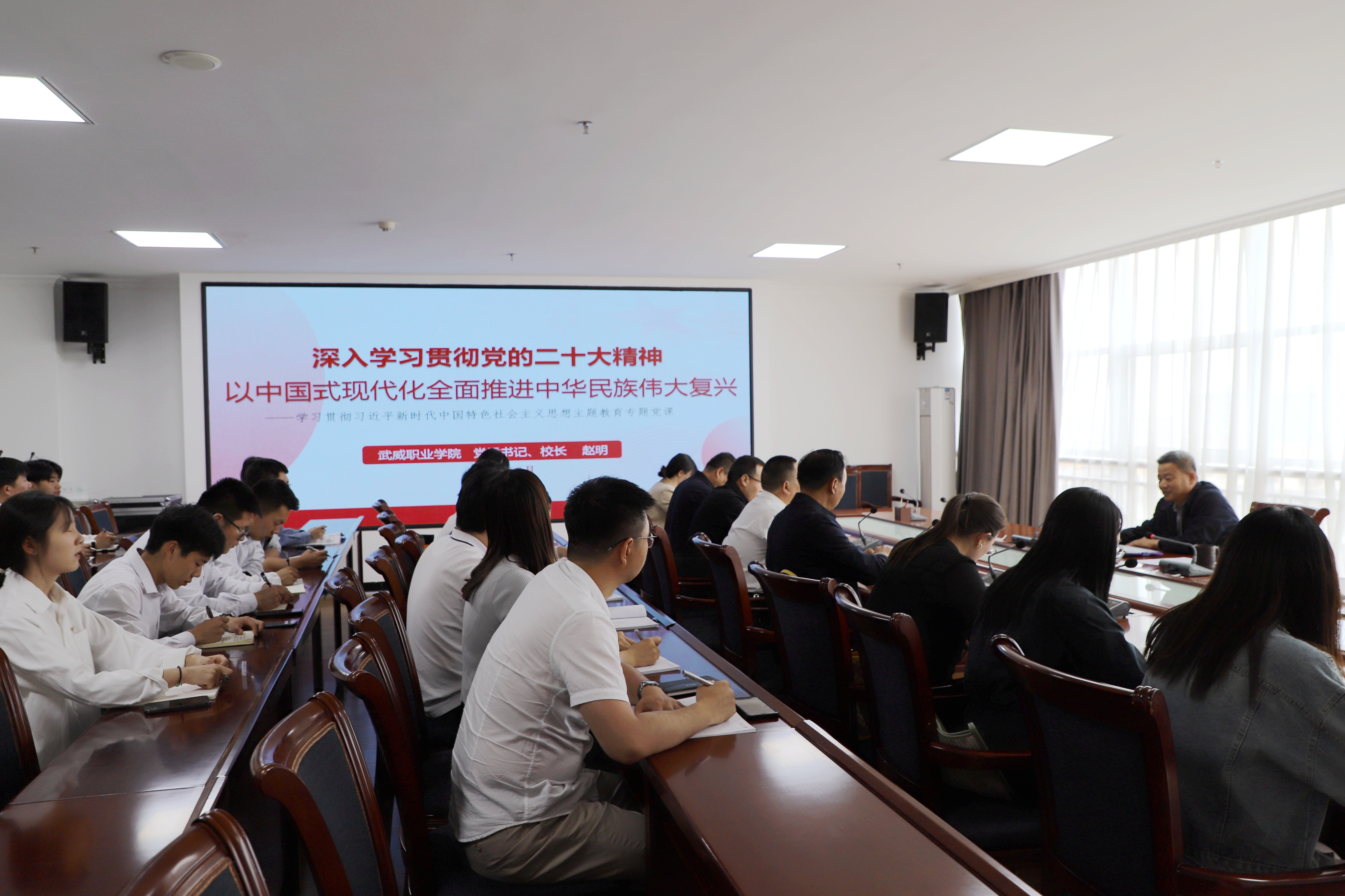 5月31日下午,學(xué)校黨委書記、校長(zhǎng)趙明以《深入學(xué)習(xí)貫徹黨的二十大精神 以中國(guó)式現(xiàn)代化全面推進(jìn)中華民族偉大復(fù)興》為題,為馬克思主義學(xué)院全體教師黨員、學(xué)校青年教師黨員代表和學(xué)生黨員代表講授了一堂精彩生動(dòng)的主題教育專題黨課。