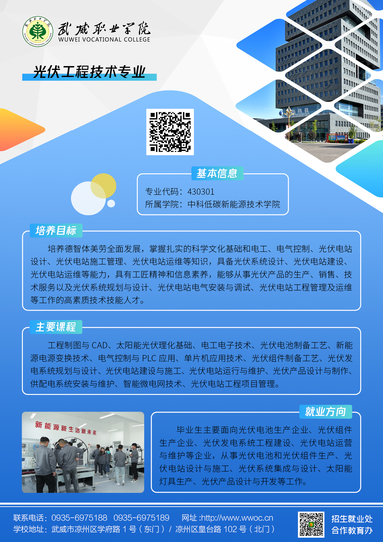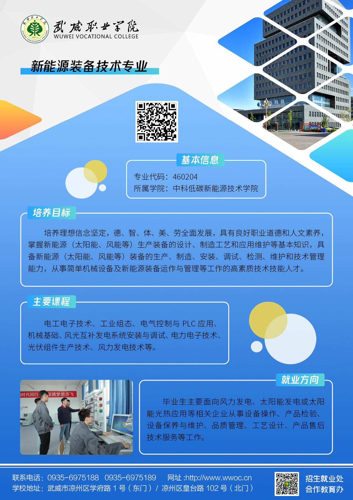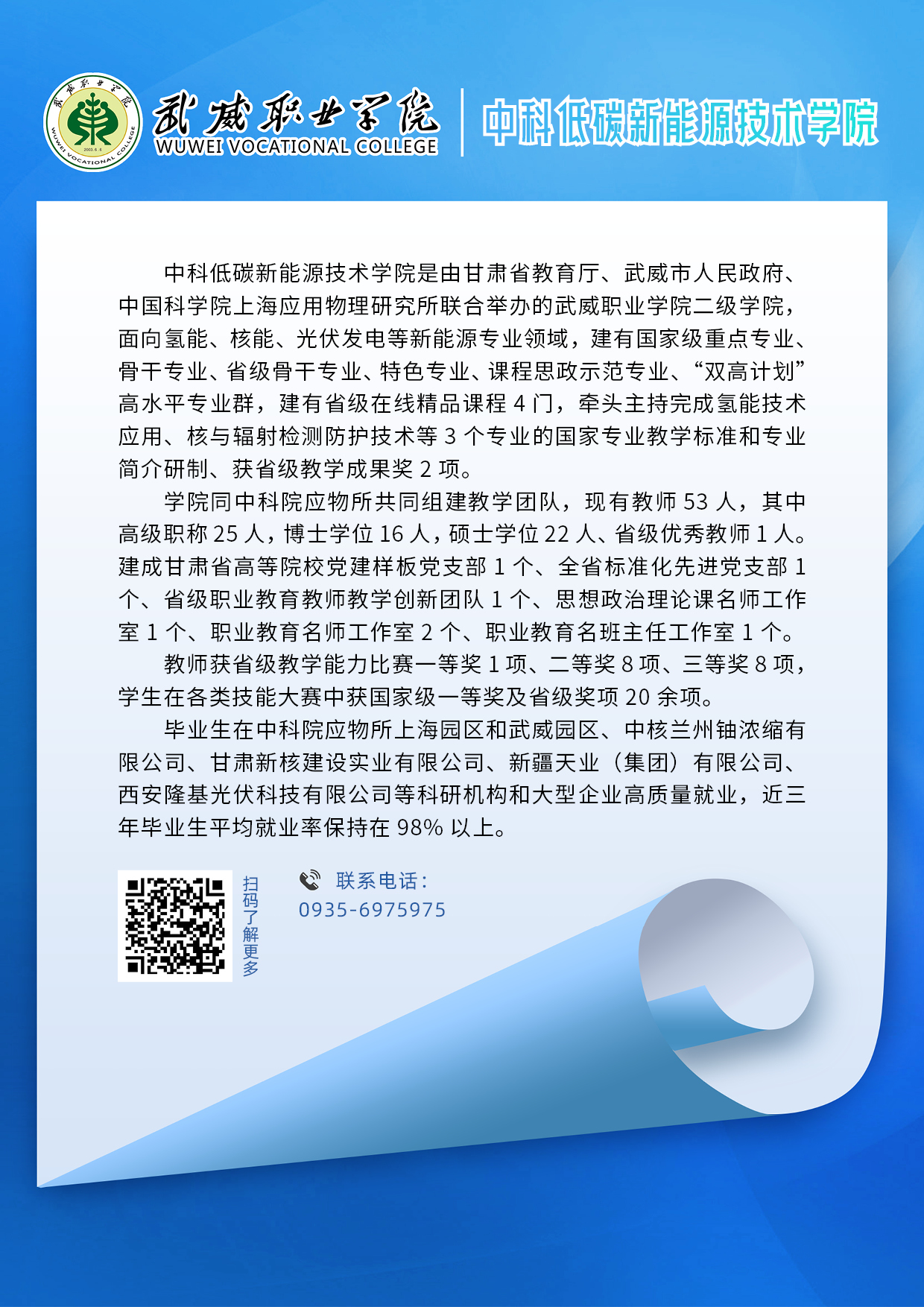武威職業(yè)學院二級學院專業(yè)簡介丨中科低碳新能源技術學院