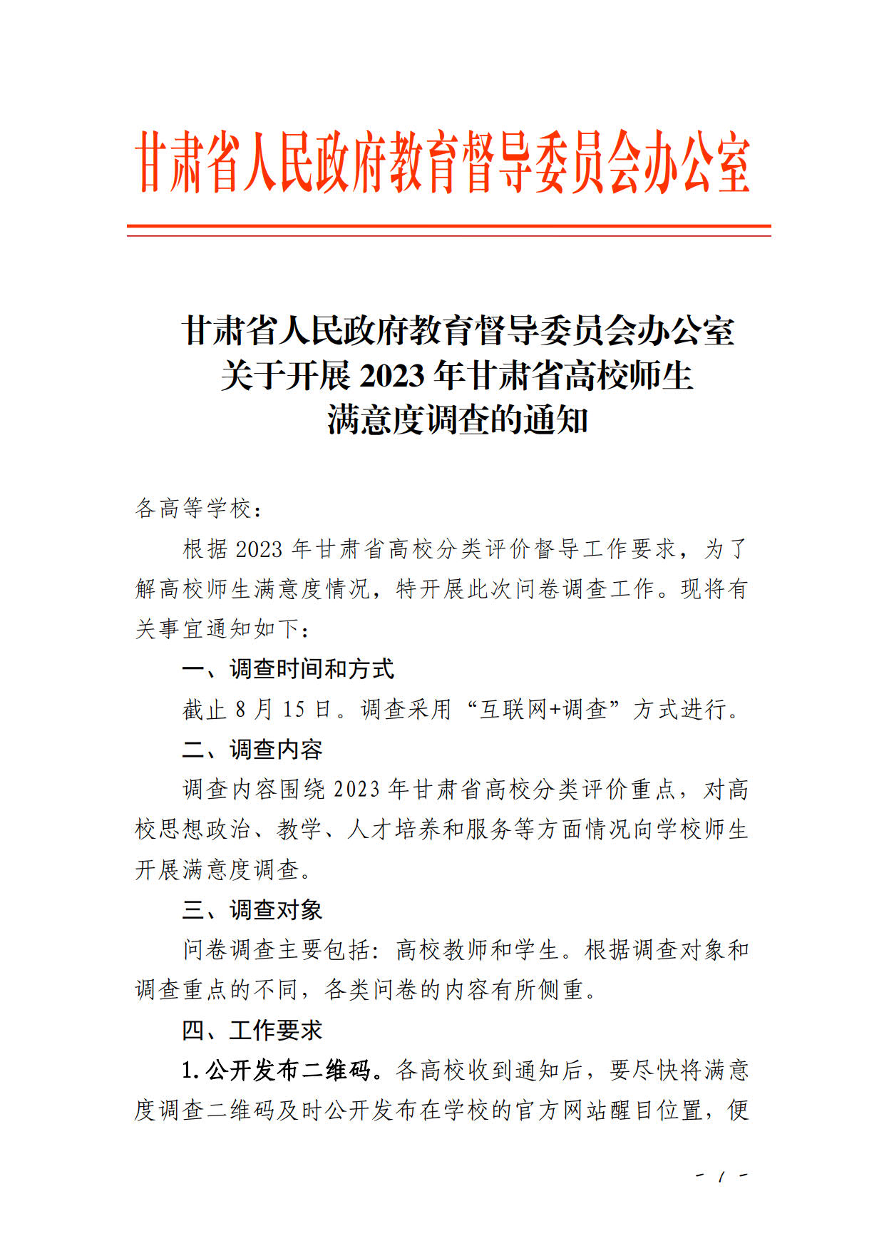 甘肅省人民政府教育督導(dǎo)委員會辦公室關(guān)于開展 2023年甘肅省高校師生滿意度調(diào)查的通知