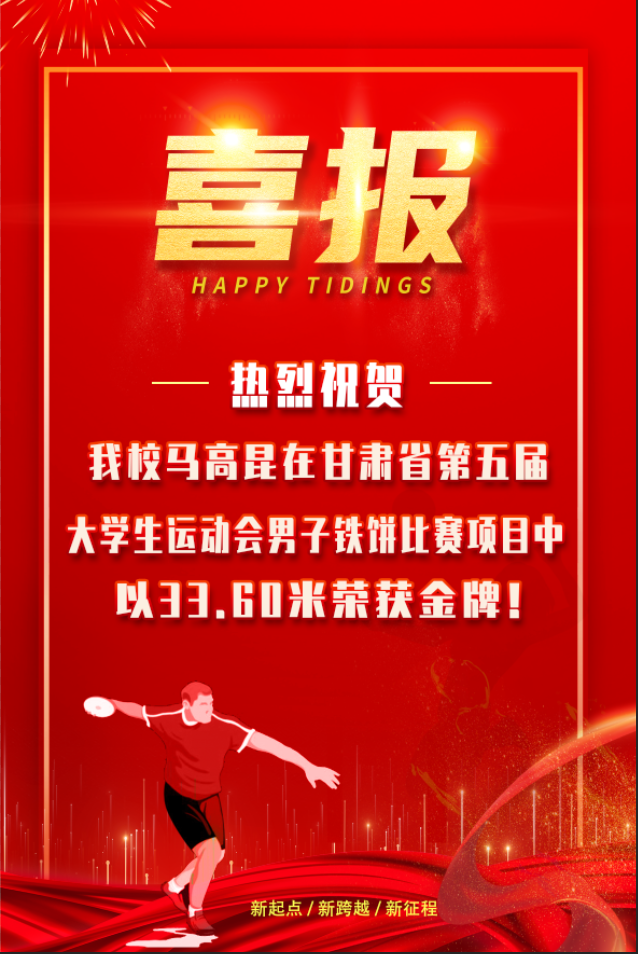 熱烈祝賀我校馬高昆在第五屆全省大學(xué)生運(yùn)動會中獲得鐵餅金牌