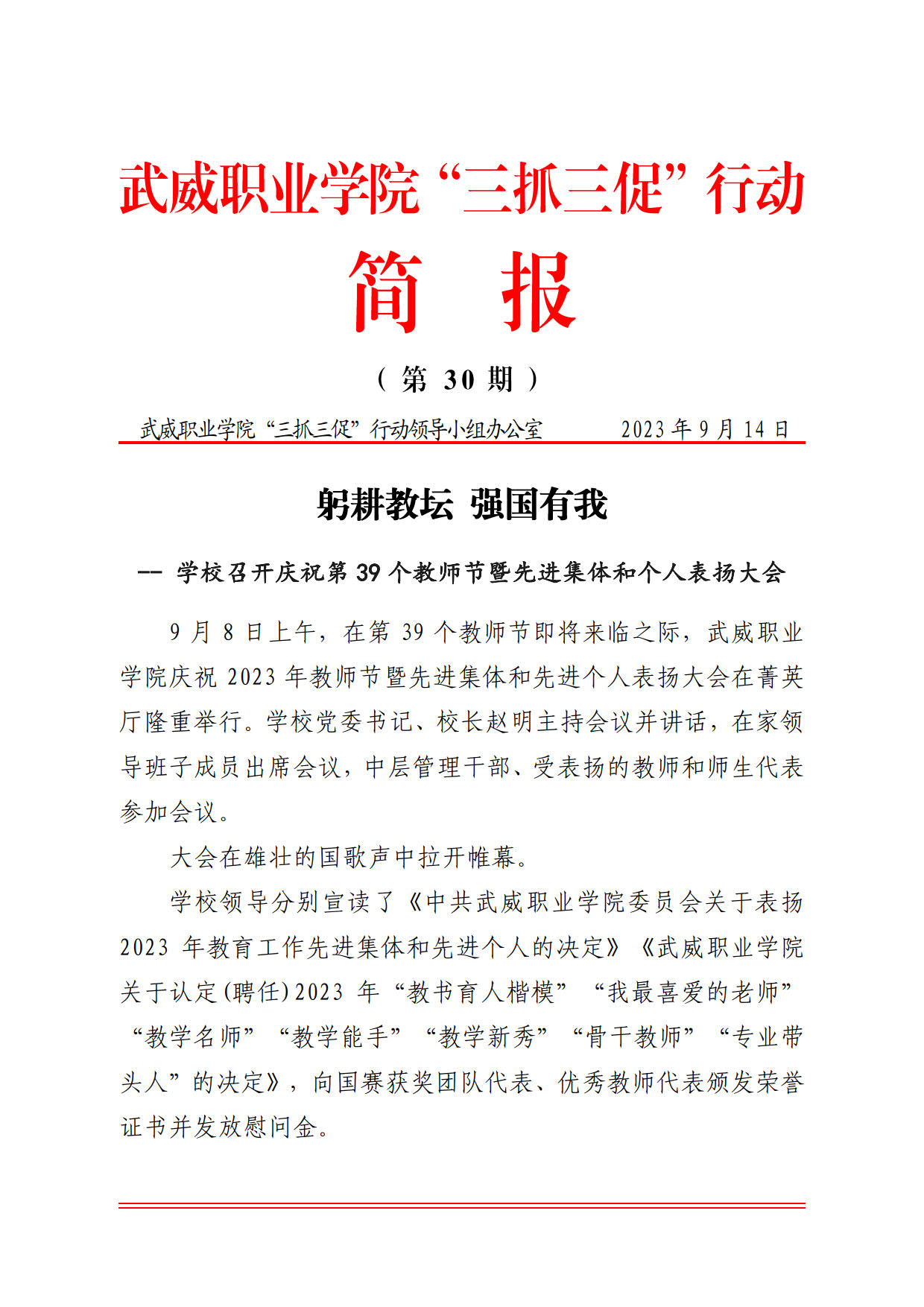 簡(jiǎn)報(bào)第30期 躬耕教壇 強(qiáng)國(guó)有我