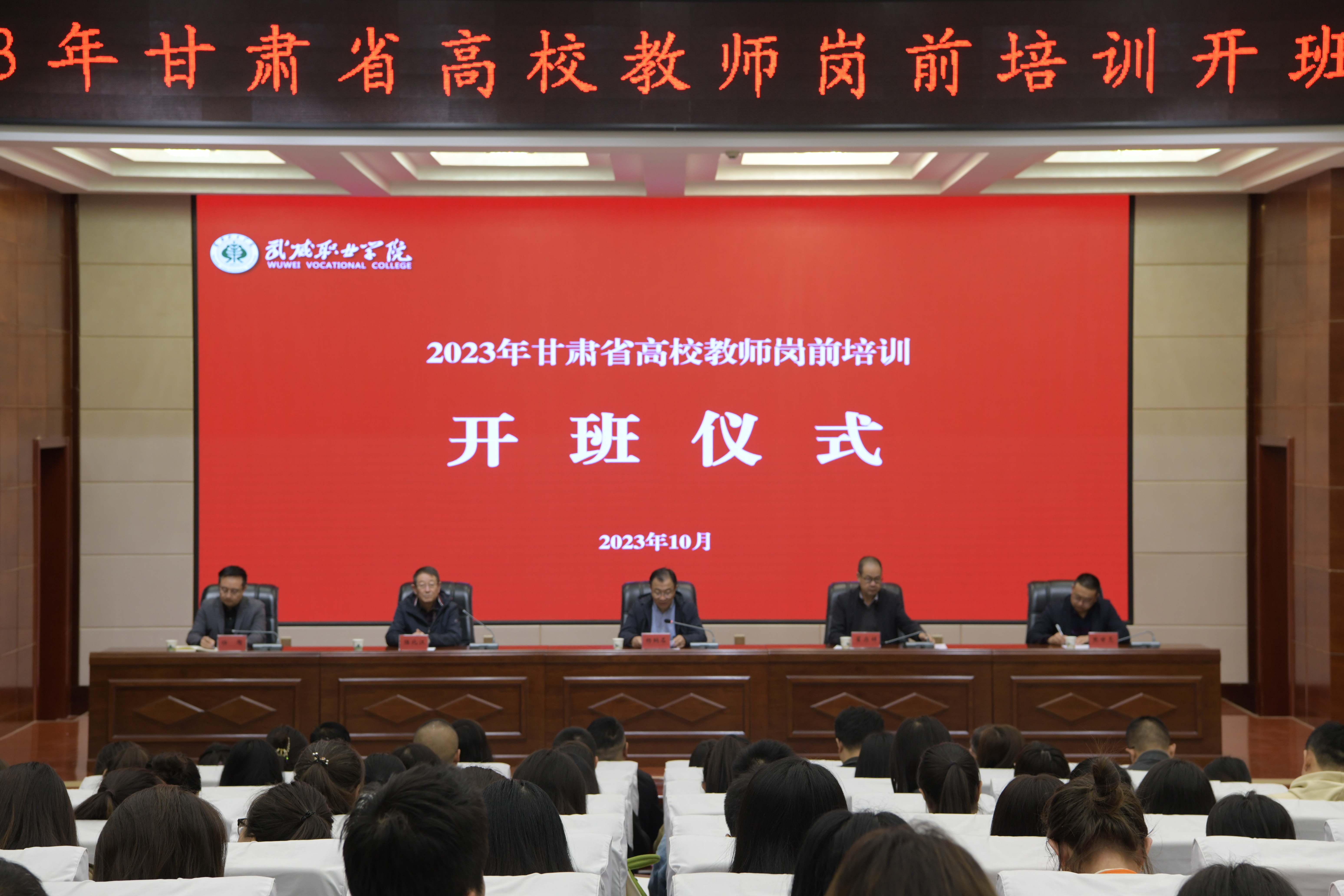 為深入學(xué)習(xí)貫徹習(xí)近平總書記教師節(jié)重要指示精神,引導(dǎo)廣大教師深刻領(lǐng)會(huì)教育家精神,牢記“為黨育人、為國育才”初心使命,樹立躬耕教壇信念,培養(yǎng)高素質(zhì)教師隊(duì)伍,10月14日上午,我校2023年新教師崗前培訓(xùn)教學(xué)班開班儀式暨第一階段集中培訓(xùn)在學(xué)生發(fā)展中心菁英廳舉行。西北師范大學(xué)繼續(xù)教育學(xué)院院長(zhǎng)、甘肅省高等學(xué)校師資培訓(xùn)中心辦公室主任楊納名,武威職業(yè)學(xué)院黨委副書記翟存祥出席會(huì)議并講話,組織人事處、教務(wù)處負(fù)責(zé)人和180位新教師參加開班儀式。儀式由甘肅省高等學(xué)校師資培訓(xùn)中心副主任陸北江主持。