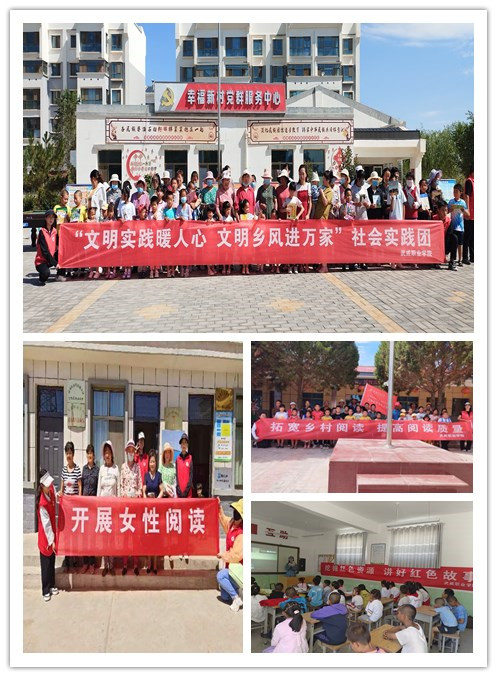 “文明實踐暖人心 文明鄉(xiāng)風進萬家”社會實踐團深入涼州區(qū)高壩鎮(zhèn)、長城鎮(zhèn)、永昌鎮(zhèn)、吳家井鎮(zhèn),古浪縣綠洲小鎮(zhèn),武威市社會福利院等地開展“拓寬鄉(xiāng)村閱讀 提高閱讀質(zhì)量”“圖書漂流”“開展女性閱讀”四項主題活動,讓廣大農(nóng)民群眾親身感受文化的魅力,提升農(nóng)村女性文化素養(yǎng),用紅色事跡啟迪人生,促進農(nóng)村文化建設(shè)、道德建設(shè)、倫理建設(shè)和文明鄉(xiāng)風建設(shè)。