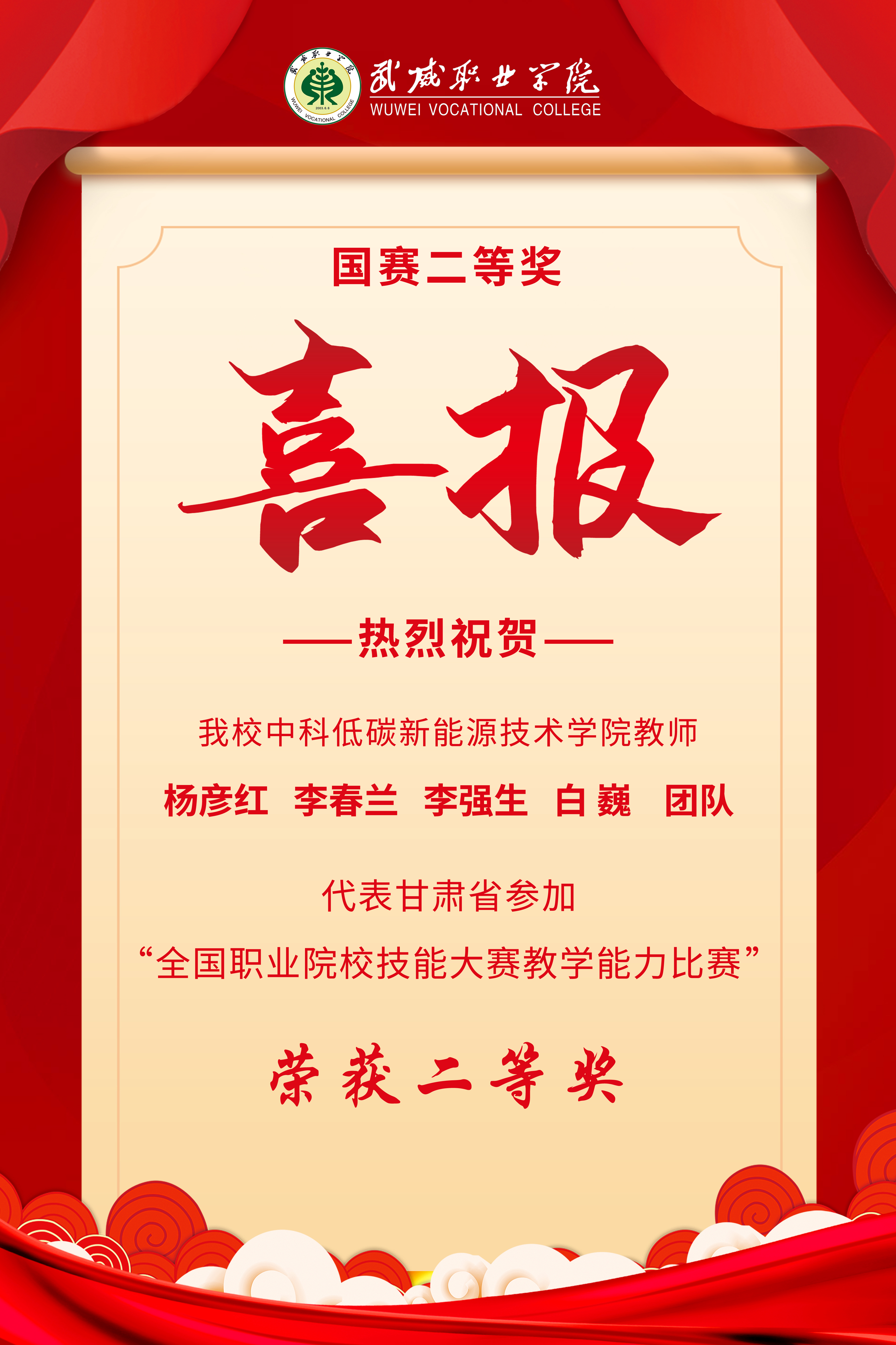 -- ——我校楊彥紅團(tuán)隊(duì)喜獲全國(guó)職業(yè)院校技能大賽教學(xué)能力比賽二等獎(jiǎng)