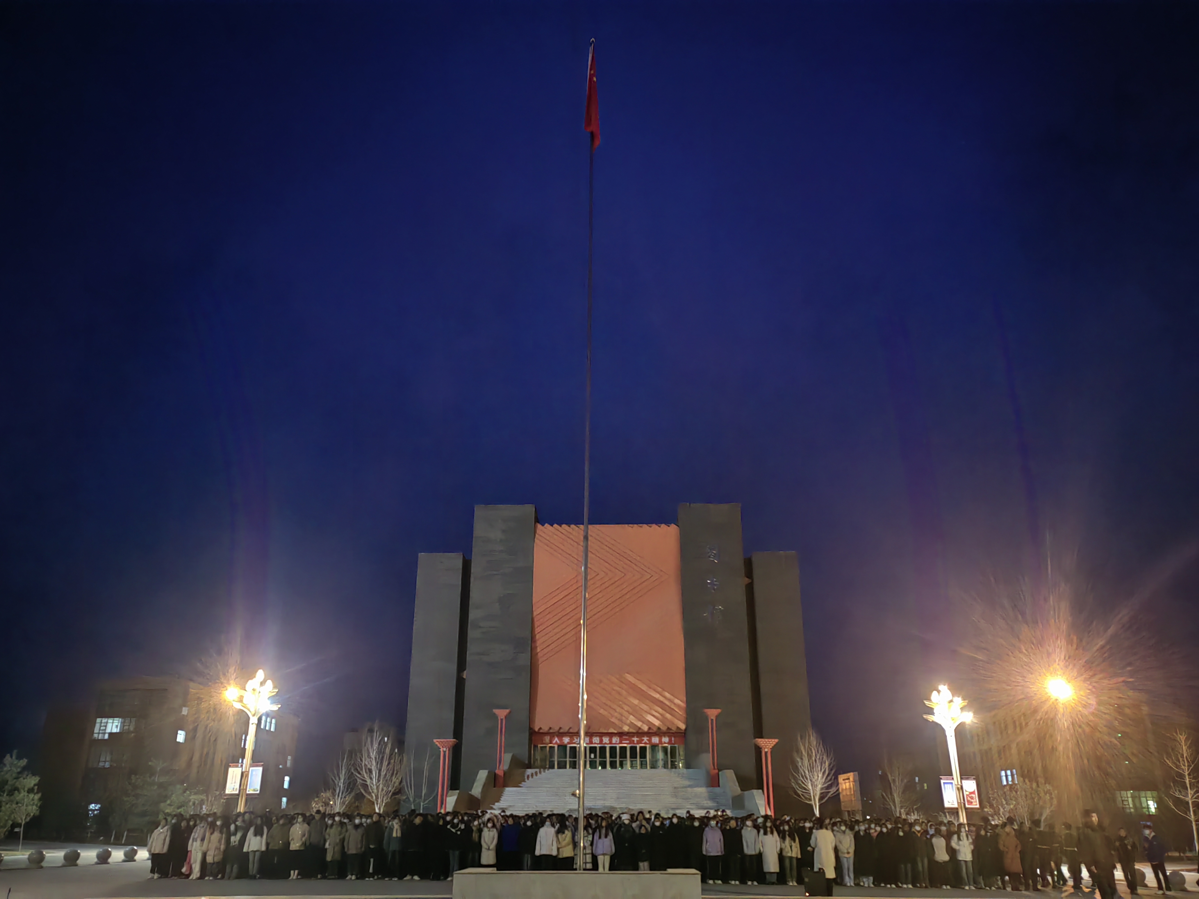 天色微明,國旗護(hù)衛(wèi)隊(duì)昂首挺胸,邁著鏗鏘有力的步伐護(hù)送國旗緩緩走向旗臺(tái),全體師生肅然而立,行注目禮,伴隨著莊嚴(yán)的《中華人民共和國國歌》,五星紅旗在慷慨激昂的國歌聲中冉冉升起。