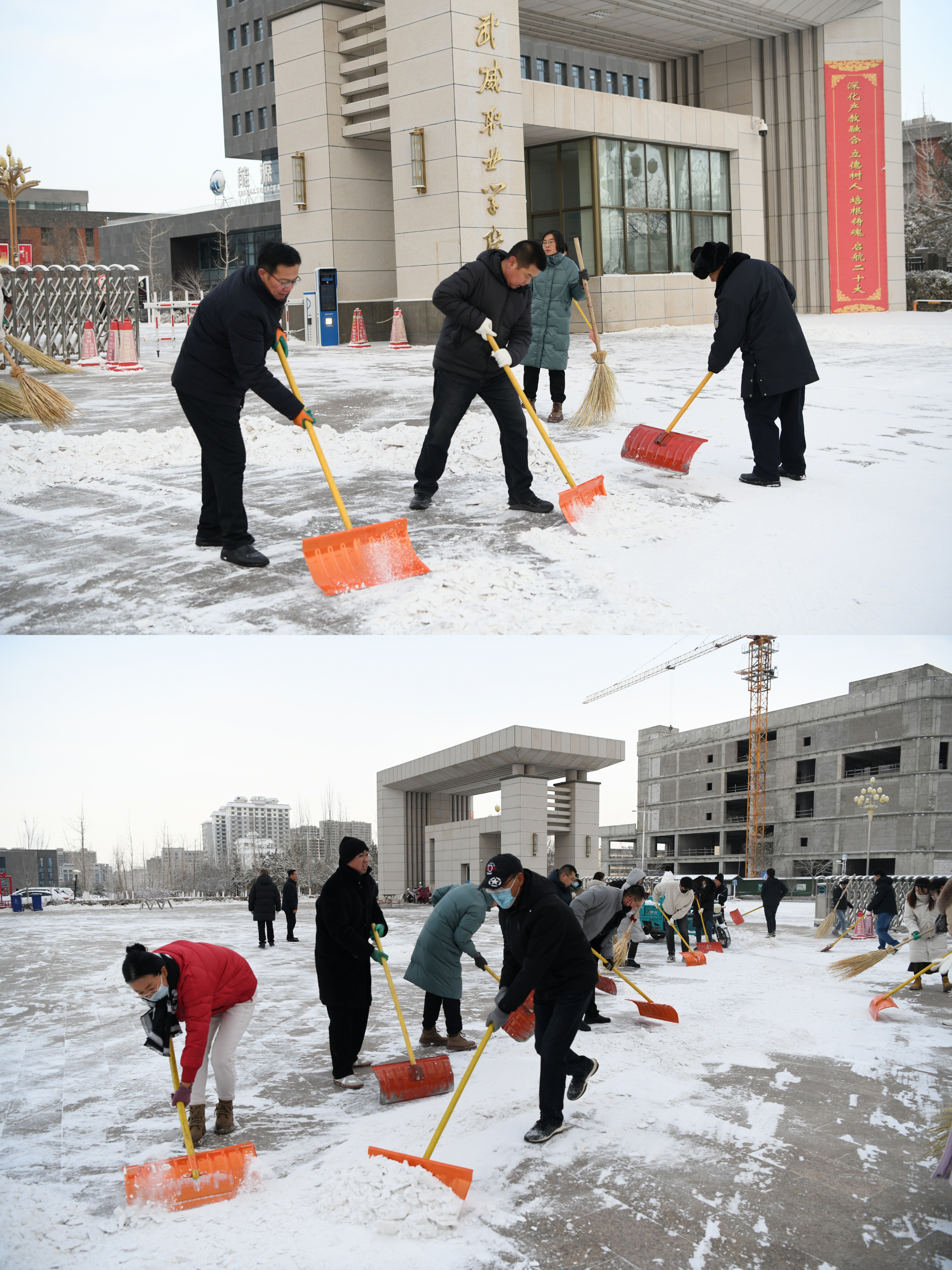 在校長、黨委副書記張開禮的帶領(lǐng)下,老師們都積極行動起來,拿上鐵鍬、掃帚清掃校內(nèi)積雪。天氣雖然寒冷,但是大家的熱情卻溫暖了校園的每一個角落。老師們分工有序、干勁十足,不停的揮舞著手中的掃雪工具,積雪很快就被打掃干凈,消除了安全隱患。